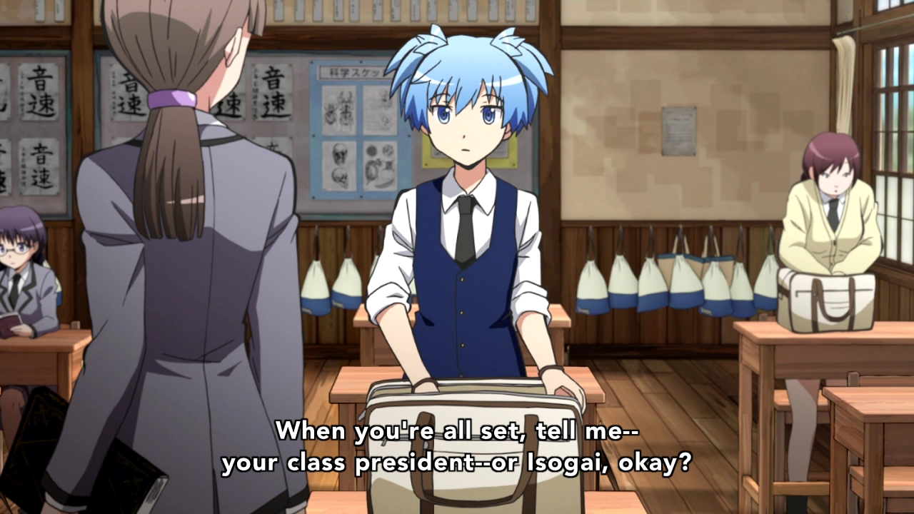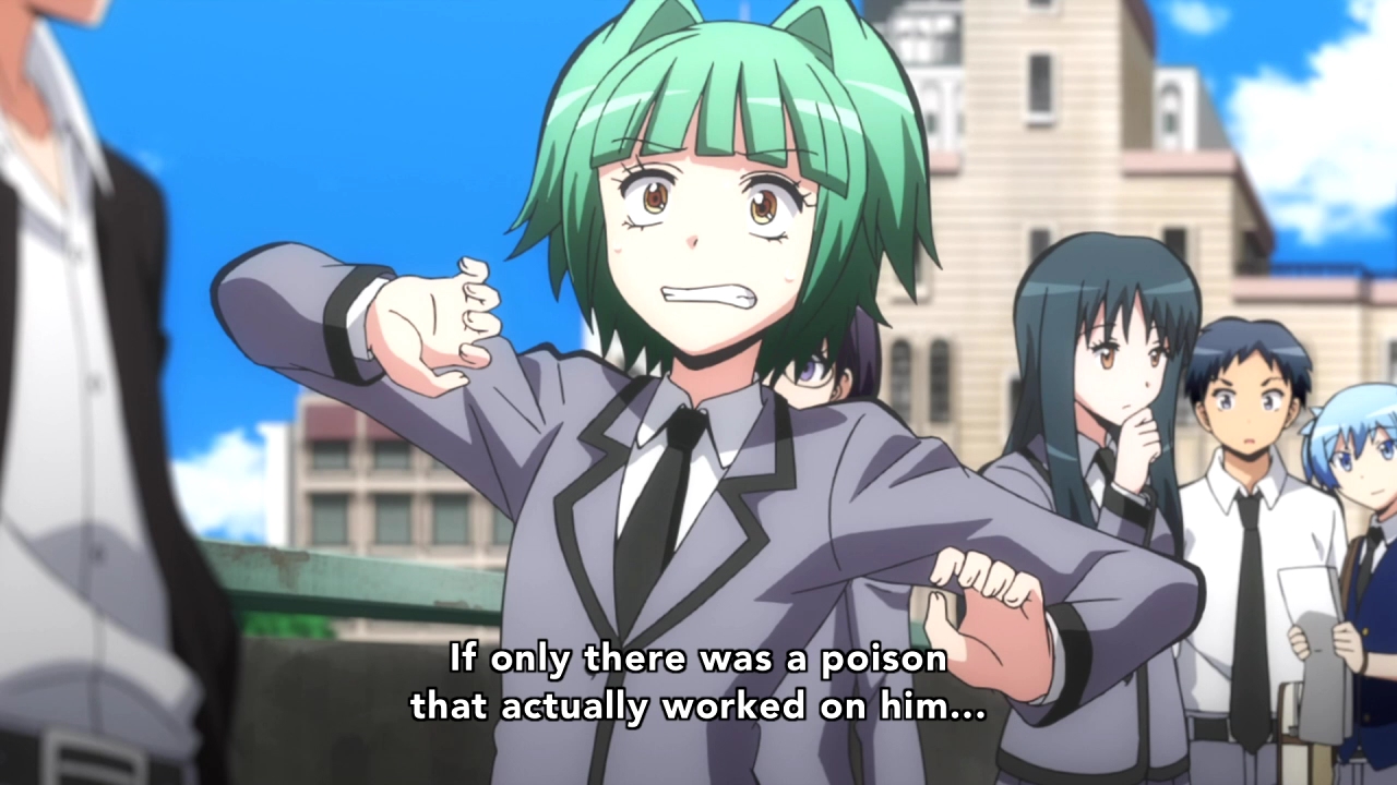 Her father is a very strict person, and kept on her for keeping good grades and holding a high status. It all became too much for her, so she rebelled. She went out, changed her look, and went out to play around and be in places where people wouldn’t find her, which was the arcade. But all this playing around cost her too much, and later she winded up being in the E-Class. This show doesn’t really spend much time focusing on the students, and Kanzaki’s story wasn’t exactly gripping. But I see why she did what she did. And in the end, when Koro-sensei fought the delinquents, she was pretty happy and didn’t look down on herself.