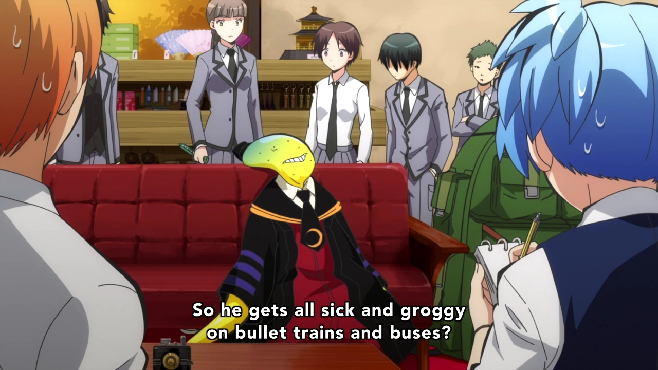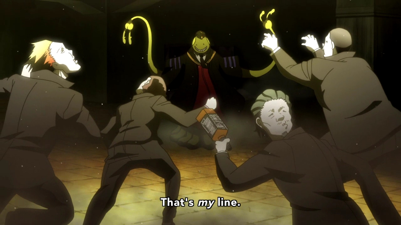 Oh yeah, Koro-sensei fought. Well, he was able to find them because Nagisa used the book, so like a sensor? Anyway, the girls were saved and they’re going to continue their trip in Kyoto. A pretty standard episode. This show really does have a problem when it comes to repeating information, saying over and over that they have to kill Koro-sensei. I get it already. I thought they were going to stop doing that, but now it really is getting repetitive.