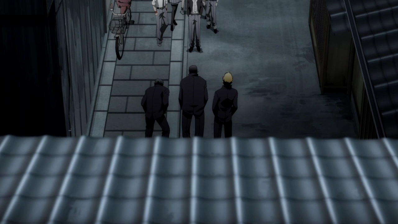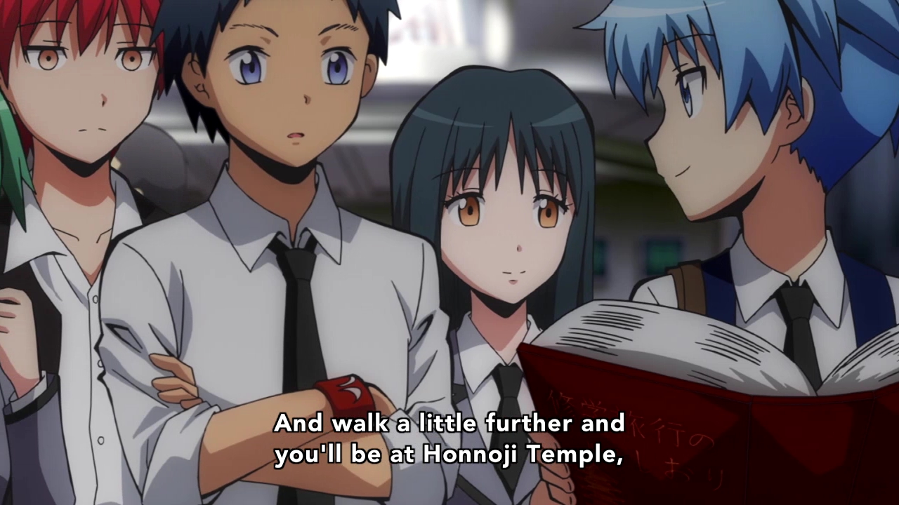 The group walks around Kyoto and take in the sights, while also trying to find “assassination-friendly” places, as Karasuma-sensei called it, to carry out an assassination attempt. They all wander into a secluded alley and they get jumped by the same scary guys from the train.