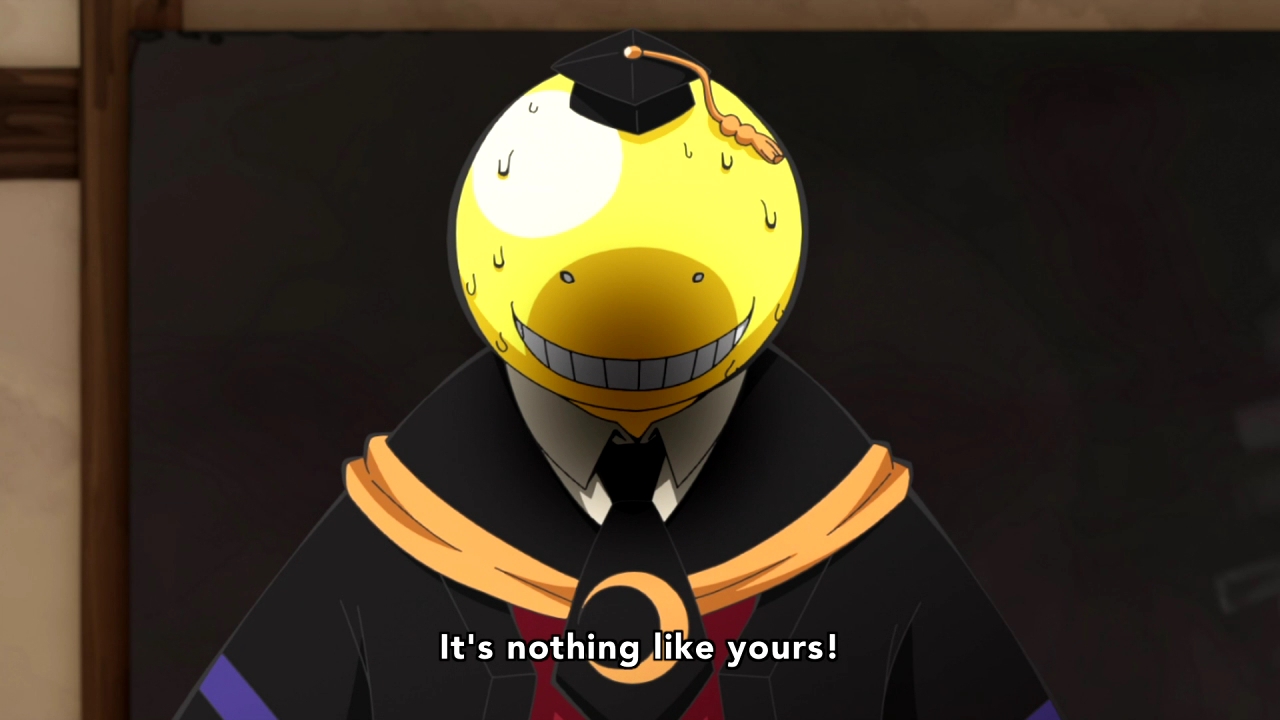 A personality change, that’s one. Instead of just her head on the screen, he turned her into a full-body LCD screen with a pretty background, while taking his advice, and taking the others’ feelings into consideration. And in just a moment, she becomes popular among the students, like most transfer students in anime are. But some don’t care about her, saying Koro-sensei upgraded her so they shouldn’t trust her. But wow…what a change. And Koro-sensei spent millions to upgrade her. That just shows how much he cares.