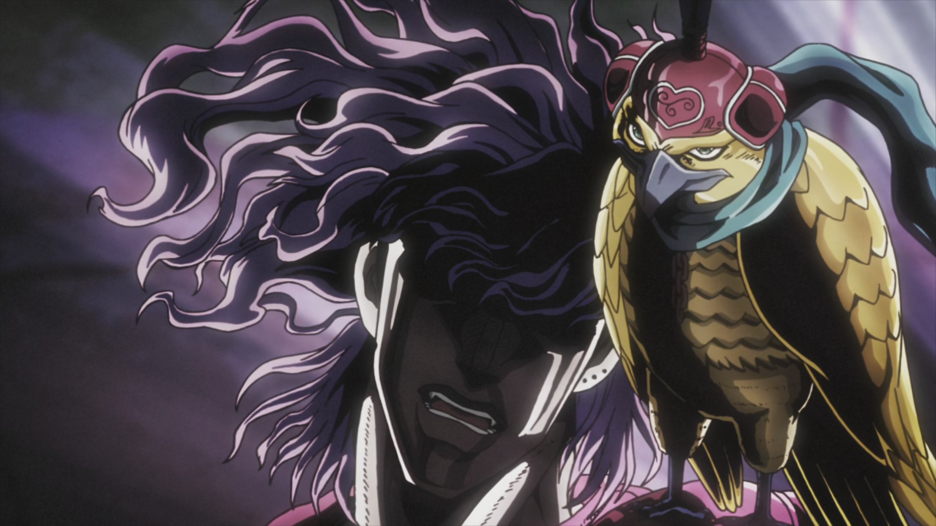 So Iggy tries playing stupid, but when the kid is about to get mauled by Pet Shop, Iggy jumps in and protects him. Even though he mentioned before that he wouldn’t care about a human child getting killed. Well haha you’re a liar ya damn dog. The rest of the episode is a chase between these two. Iggy tries to get away and escape, but Pet Shop has great eyes and won’t go down until he kills Iggy. Even when Iggy gives him a chance to live after landing a good strike on him, Pet Shop won’t give up. The bird shows his Stand’s true form, and Iggy is running off again, and we end there.
