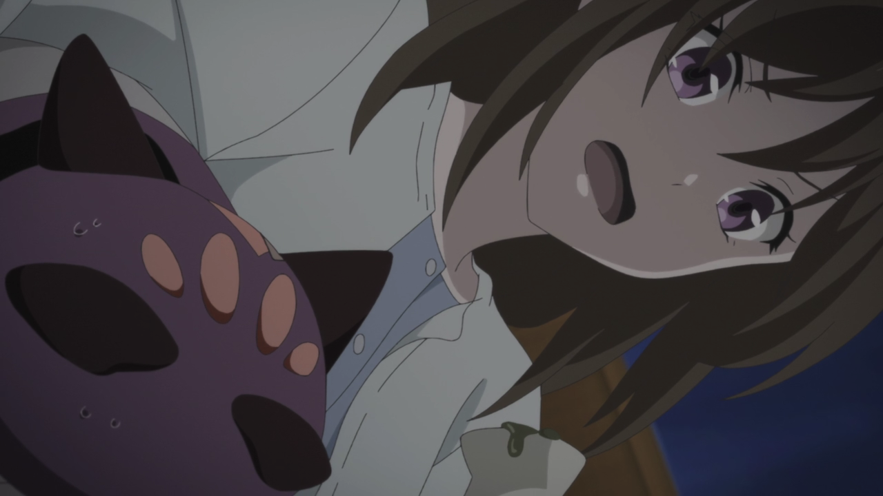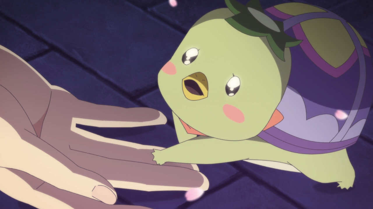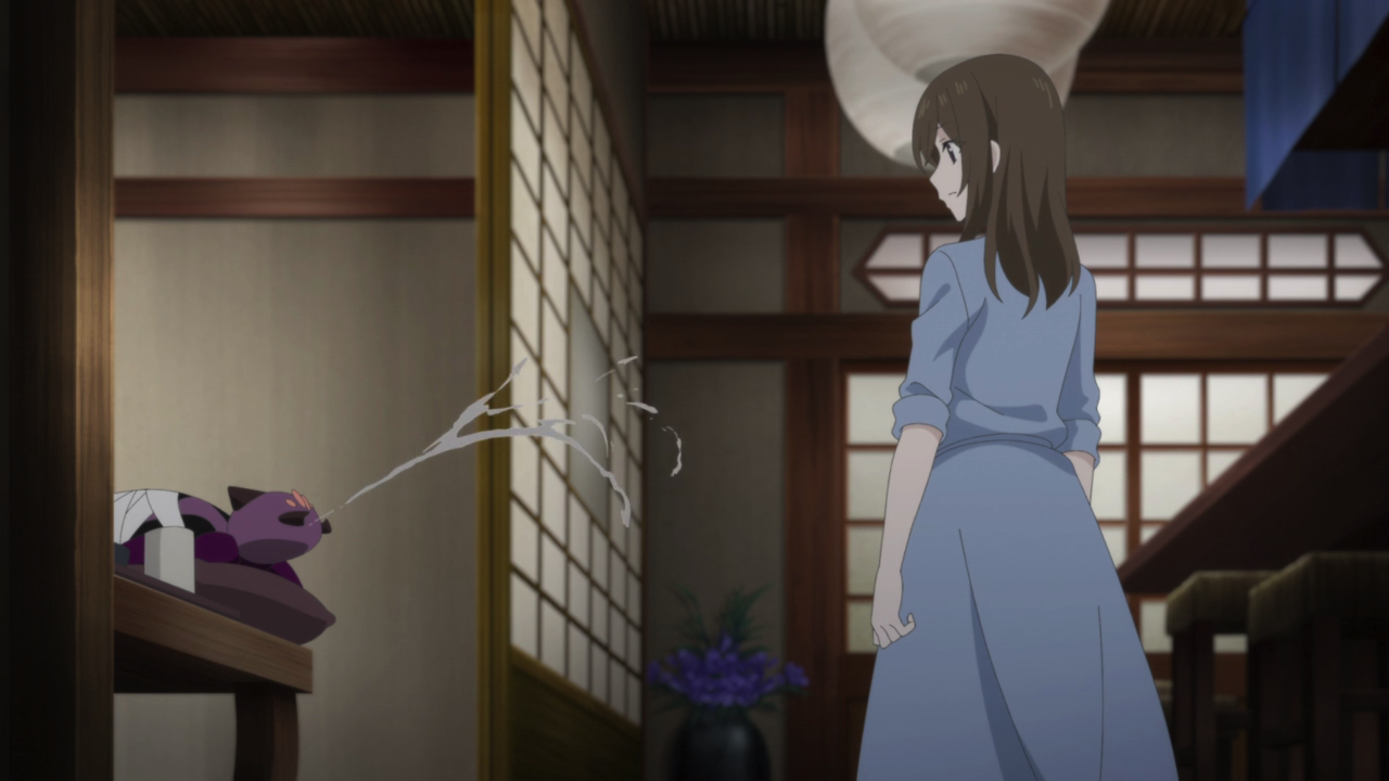 Even though it was only for a short while, it was nice to see Aoi back in her origin world. It gave us the chance to see how she feels coming back a place where she has nobody to return to (with the exception of Suzuran who is now watching over Shiro’s grave). After they went their separate ways, Aoi felt lonely. Interestingly enough, it looks as though she doesn’t want to admit it, because despite her claims, being alone actually scares her. Fortunately for her, Oodana was there to pick her up by nightfall, so she is able to comfortably return to the hidden realm, this time bringing along her cute little Kappa friend who has been anxiously waiting for her meals.