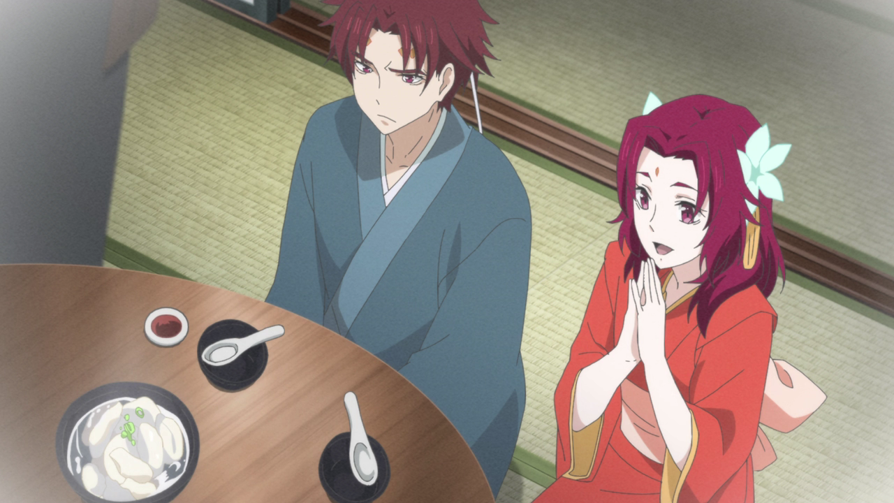 The episode picks up from where we left off in regards of the story with Shiro and the Earth-Spider Siblings. We learn the two of them lost their family to Humans and because of that Akatsuki became bitter and began attacking them, and trying his hardest to make sure his sister was kept safe. It is Shiro however who takes them in, having them sign a contract to serve as his bodyguards and slaves (yes he actually put that in the contract, even Aoi was shocked), but it merely an exaggerated label as he treated them well, and all they had to do was simply house chores and cook (although Akatsuki was a clumbsy one due to Shiro’s mischievousness and distaste for Ayakashi’s flavours). Eventually Akatsuki came around to trust him. However eventually it came the time for them to return to the Hidden Realm, and Shiro tore up their contract and sent them under Oodanna’s care. He wasn’t ready to leave him, he didn’t want to go, but Shiro told them it would be in their best interest to do so.