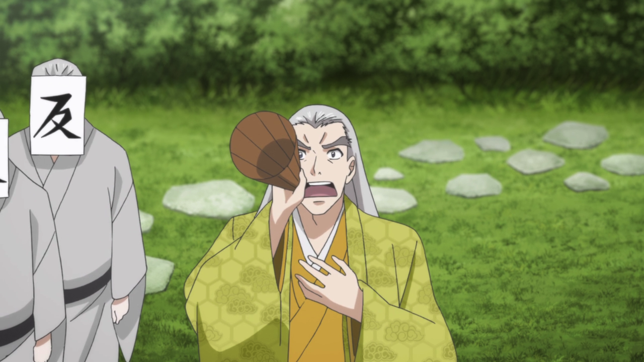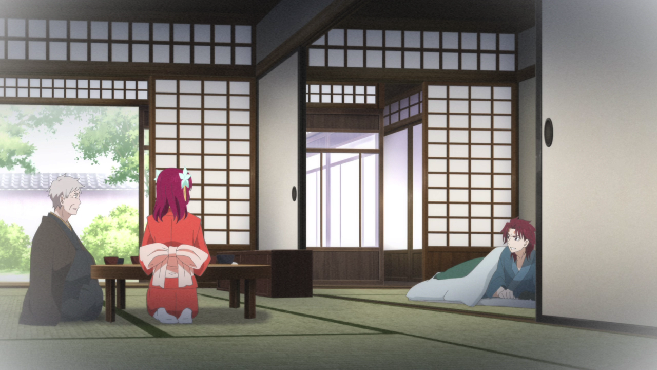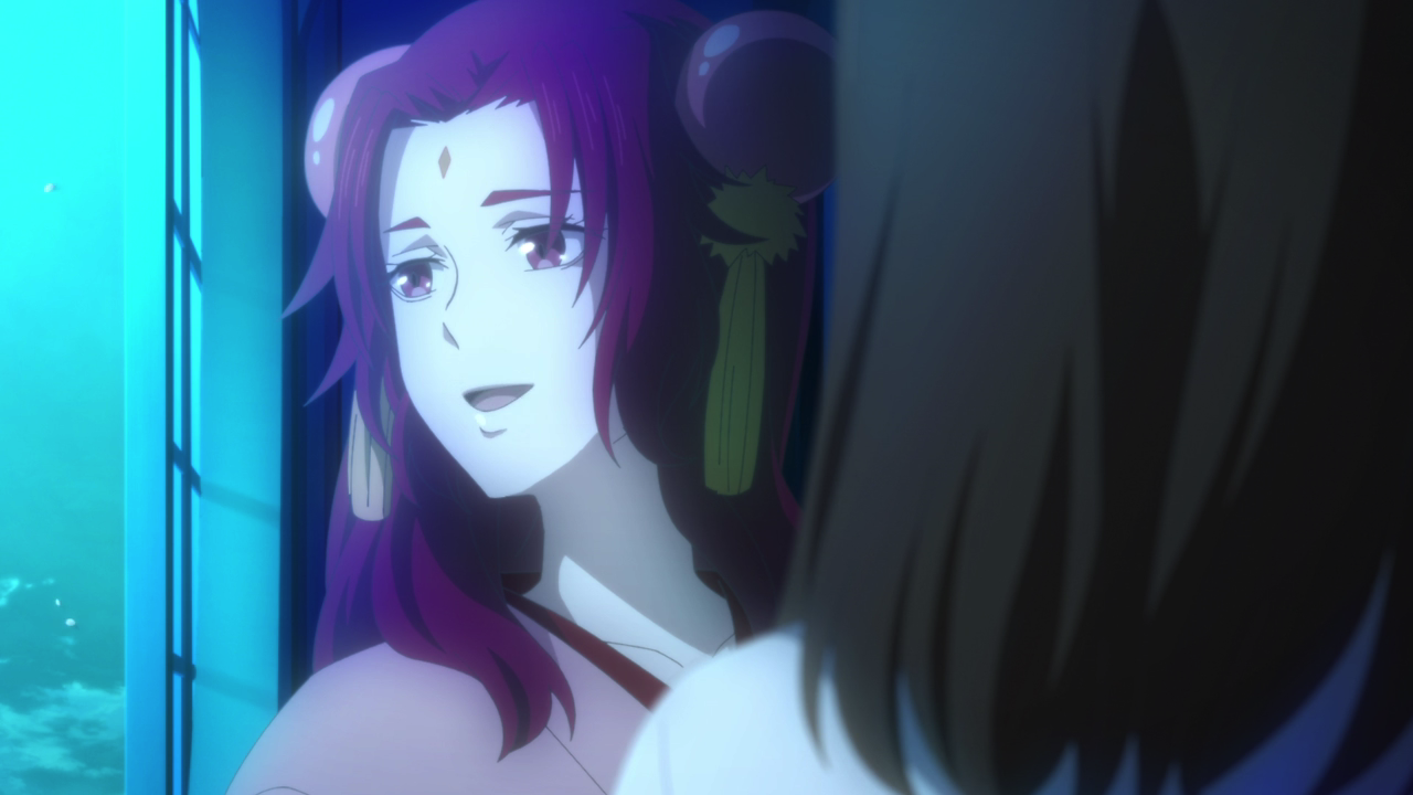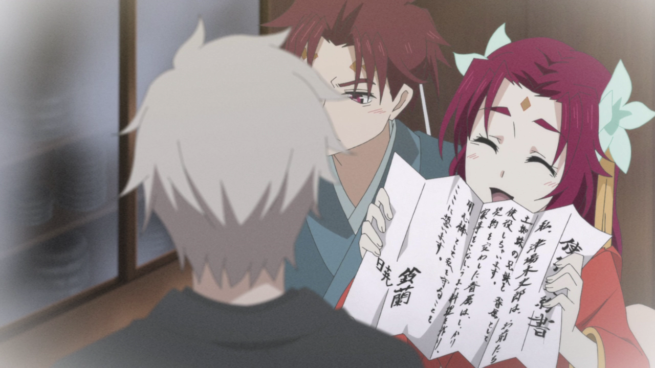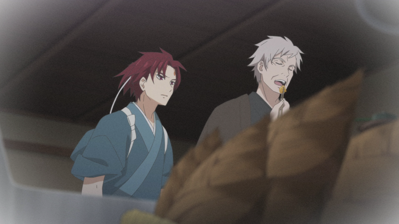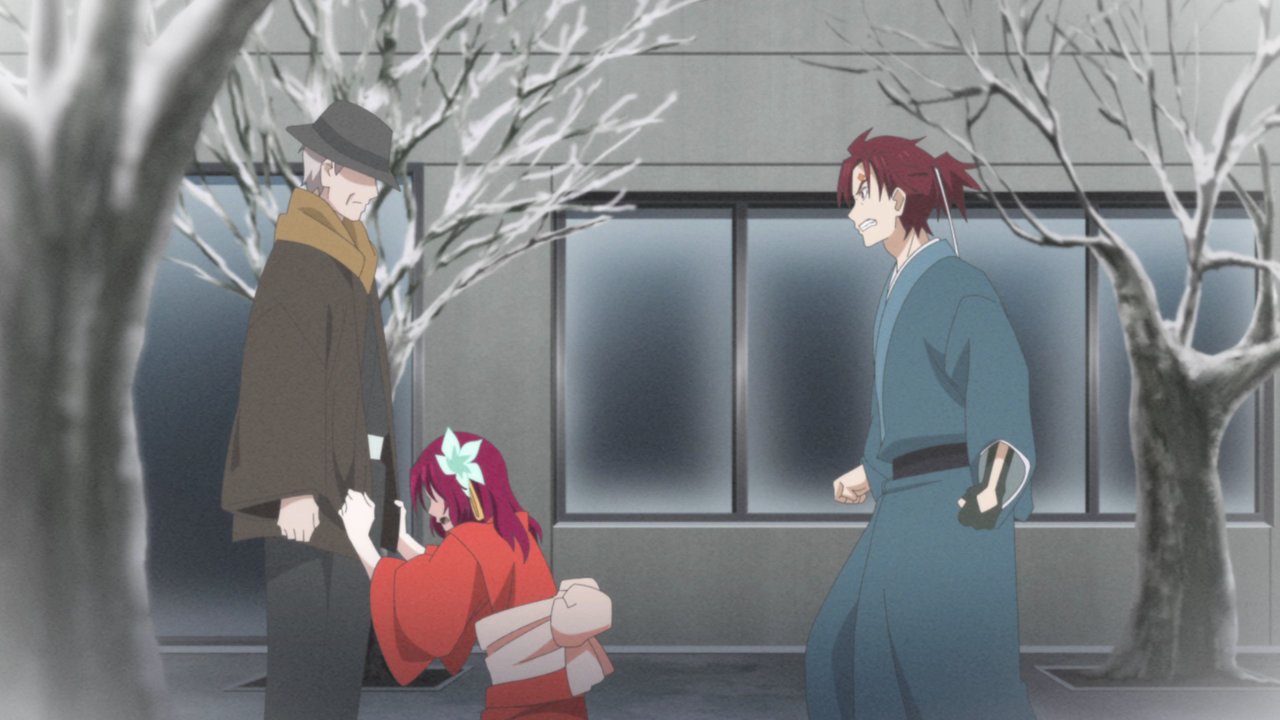 When Suzuran sets off to go to the Apparent Realm, the stalker Tan appears at the Tenjin-ya Inn and declares war against Oodanna. It was not some small fight either, Tan actually came with weapons to blow up and the the place on fire for real. We didn’t get to see how the fight played out though, only bits of it, with Akatsuki being the one to protect them until they were able to safely leave the circumstance of the battlefield. But even if had they not attacked, we know that Oodanna still intended to have Aoi escort Suzuran to the places she wants to go, as he had already prepared two tickets to the Apparent Realm.