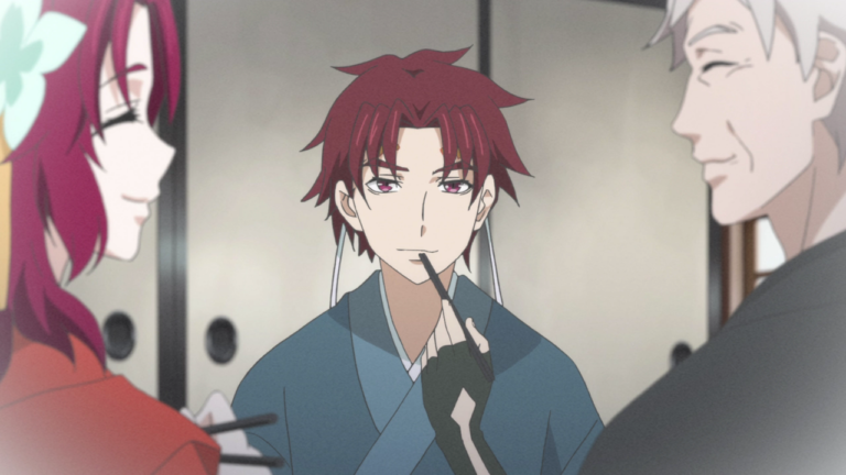 When Suzuran sets off to go to the Apparent Realm, the stalker Tan appears at the Tenjin-ya Inn and declares war against Oodanna. It was not some small fight either, Tan actually came with weapons to blow up and the the place on fire for real. We didn’t get to see how the fight played out though, only bits of it, with Akatsuki being the one to protect them until they were able to safely leave the circumstance of the battlefield. But even if had they not attacked, we know that Oodanna still intended to have Aoi escort Suzuran to the places she wants to go, as he had already prepared two tickets to the Apparent Realm.