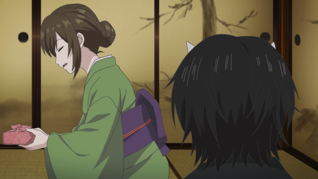 As result we now are now in a situation where Aoi is held captive. This particular development surprises me a bit because it looks like the Mystery Ayakashi may be addressed a lot sooner than I had anticipated. They are certainly making it hard to figure out who is it, dropping hints that it could either be Oodanna or Ginji. In this particularly episode, they were sure to even draw parallels to the event, showing us how both of them interact with certain things that only the Mystery Ayakashi should know about. In Oodanna’s case, he repeated the same words of comfort. However words are something that can be easily repeated by anyone, where as gestures tend to be more unique to the situation. There is also the fact he didn’t know about her fear for storms, but even that we can’t completely disregard if we were to interpret it as he didn’t think the incident had traumatized her to that extent. Aoi had started asking him about it, but for whatever reason she decided against it. Oodanna had a certain look in his eyes, but it was a moment I am having a hard time getting a read on since it could be interpreted as being the one or knowing who she is talking about.
