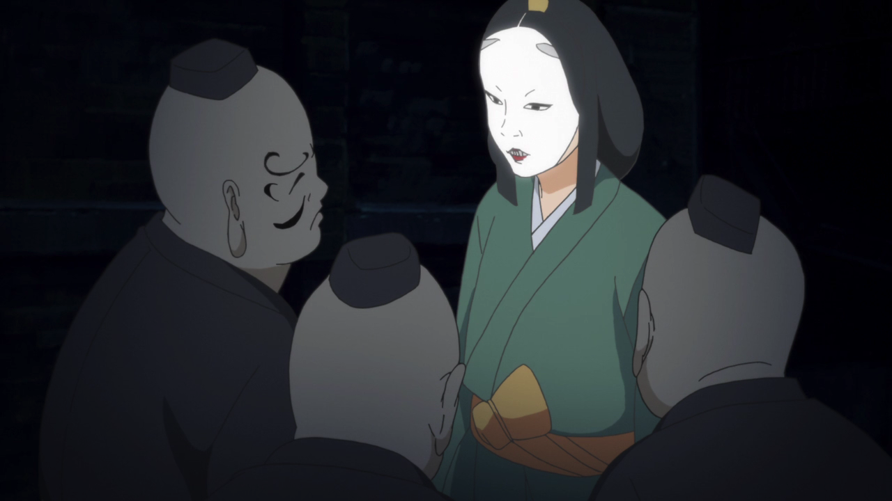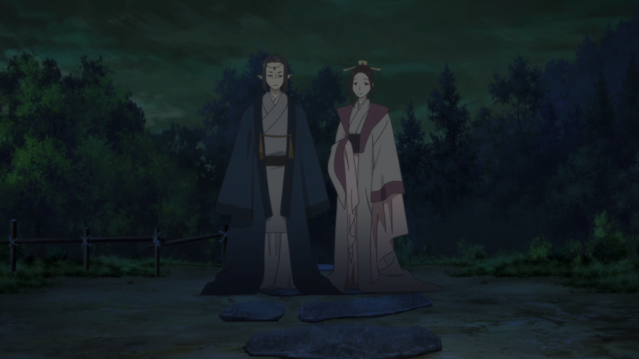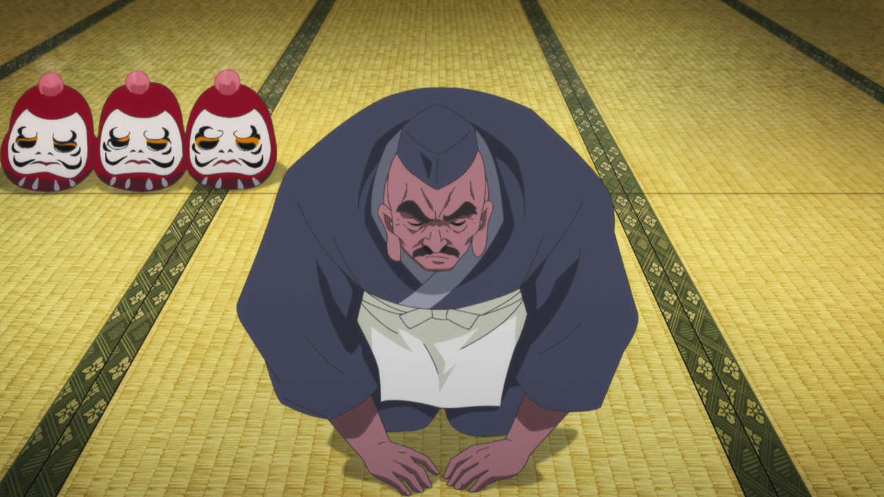 I do want to quickly note, the first time we have seen Orio-ya was at the end of Episode 1, discussing about the arrival of Oodanna’s Human bride with a tengu. At the time, they mentioned “the day of the ceremony is approaching” (why yes I rewatch the entire show often enough to remember these things, and I regret nothing!) Whatever that is, I am going to guess that could have potentially been the subject of the Hachiyo Night Meeting. When Byakuya returns, perhaps we will get some answers of what we missed, if he was allowed to participate at the meeting in Oodanna’s steed in the first place.