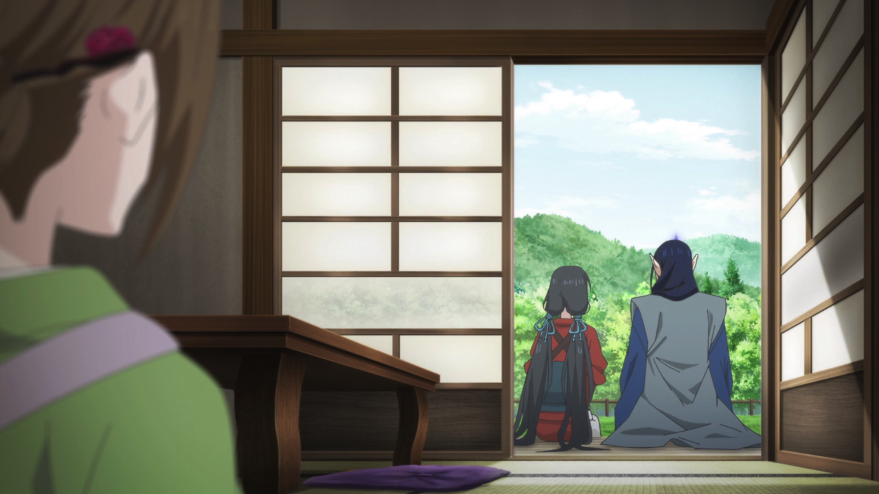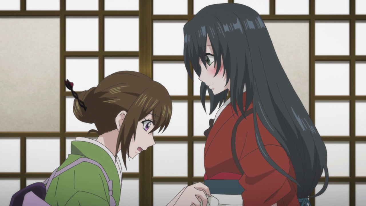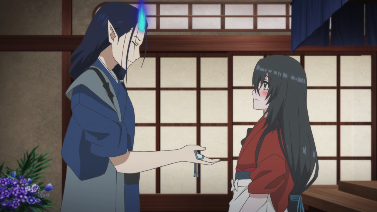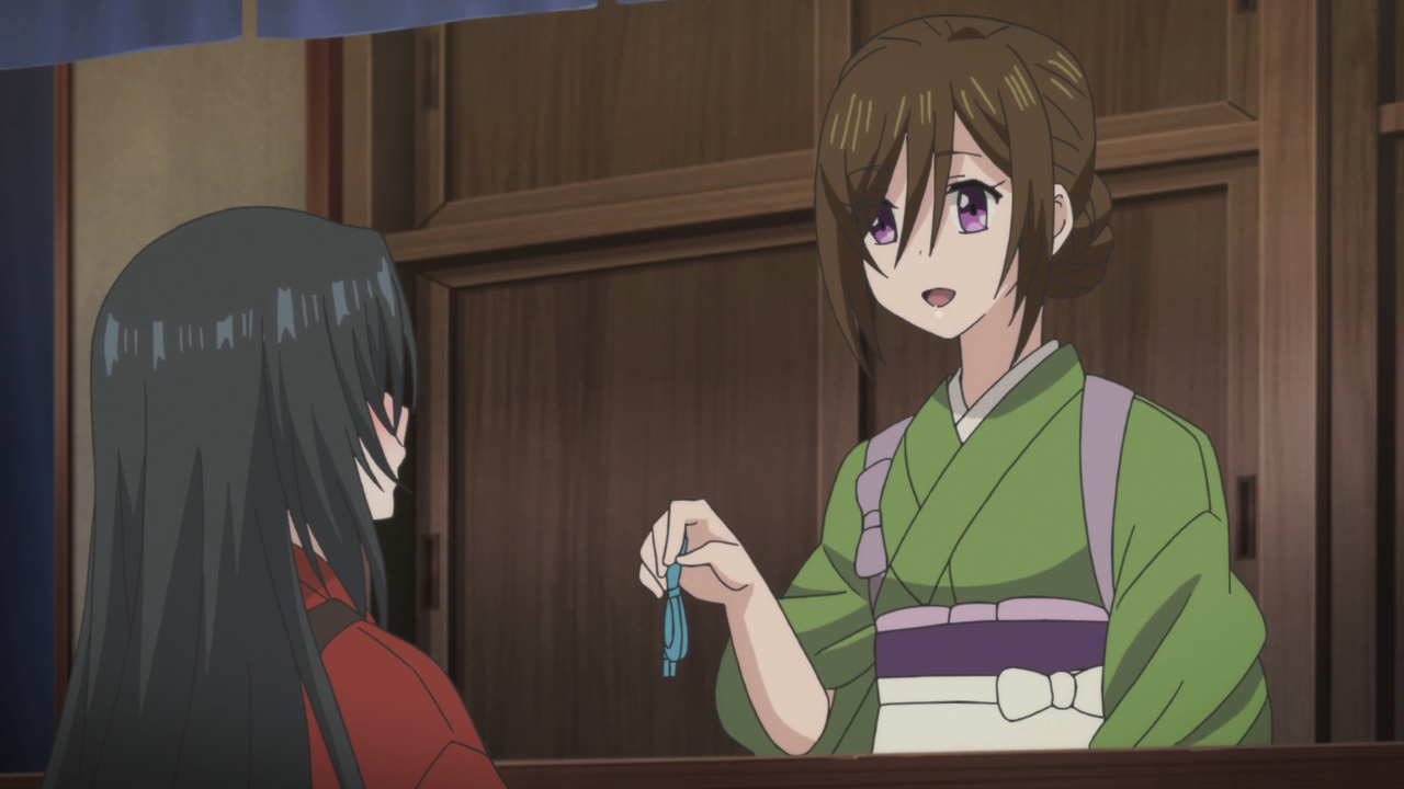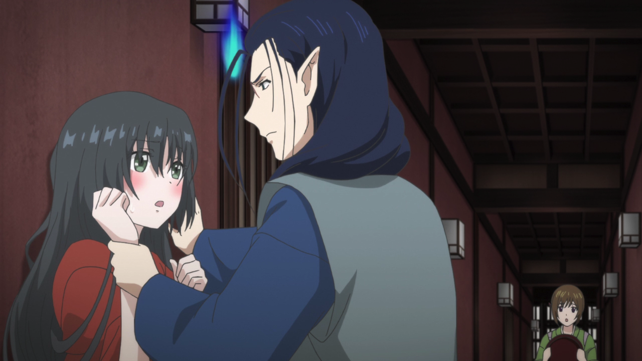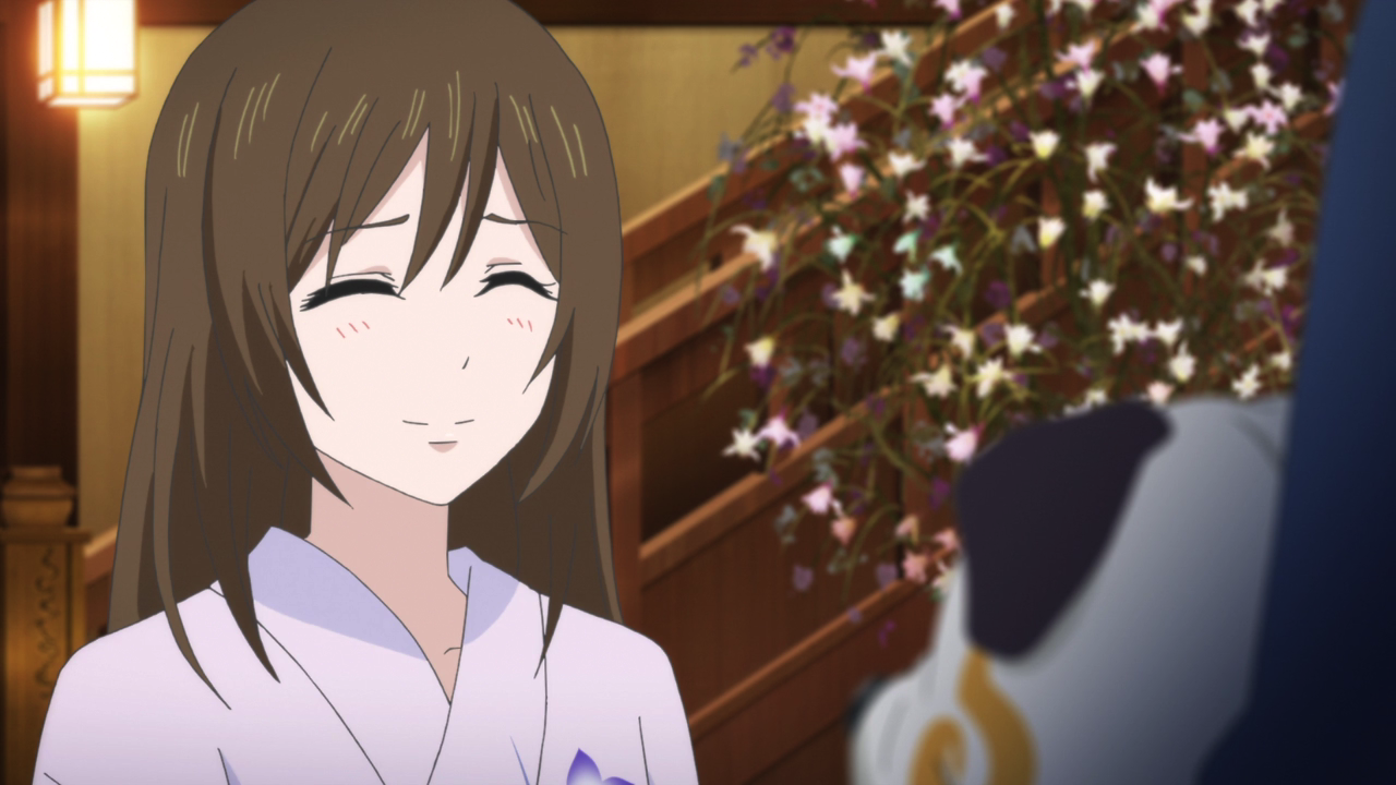 We learned the two of them are mentor and apprentice, Tokihiko is the Chief Bath Caretaker, and provided Shizuna an opportunity for a better life by recruiting her to be his apprentice. The two of them worked at Orio-ya’s Inn, until one day, while Shizuna was out scouting grounds for a new hot spring, she ended up trekking in a dangerous place, and Tokihiko ended up getting badly wounded while protecting her. The wound left a scar, and now his powers end up leaking from it. Due to the incident, despite Tokihiko’s pleas, Shizuna was fired. Unemployed with no place to go, Oodanna finds her and hires her to work at his inn. These are the two main reasons why Shizuna will not leave the Tenjin-ya Inn.