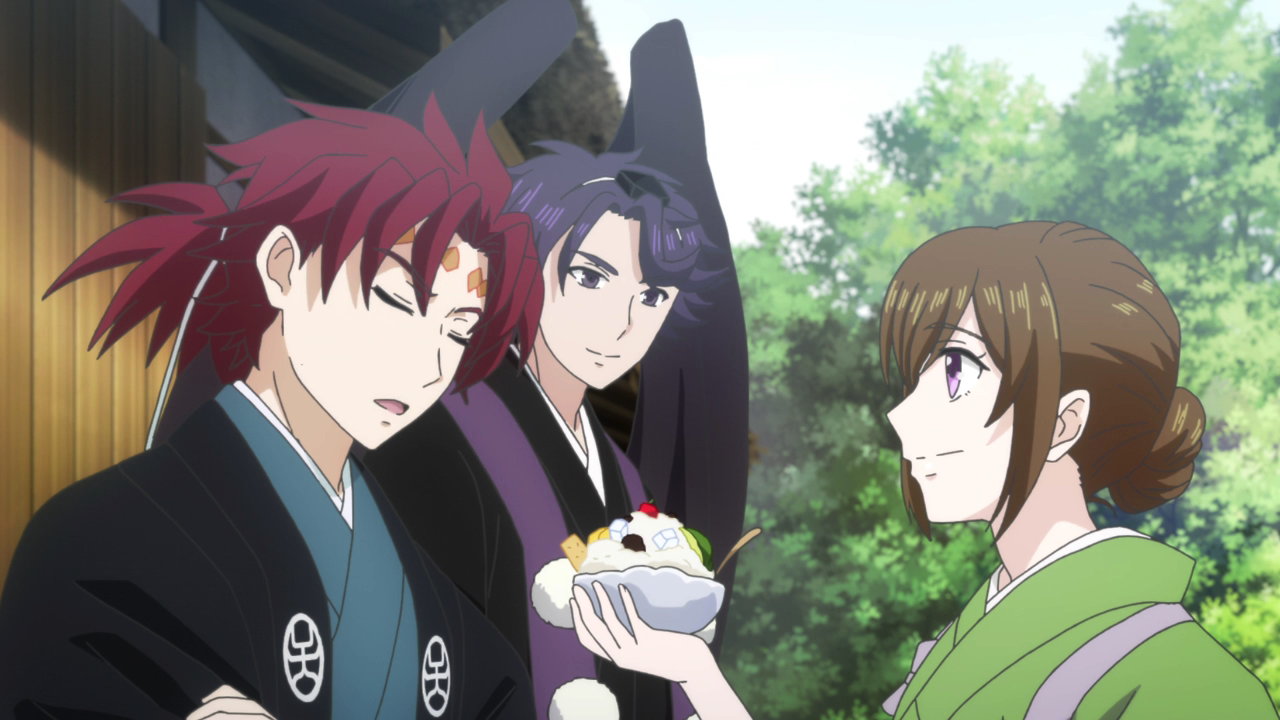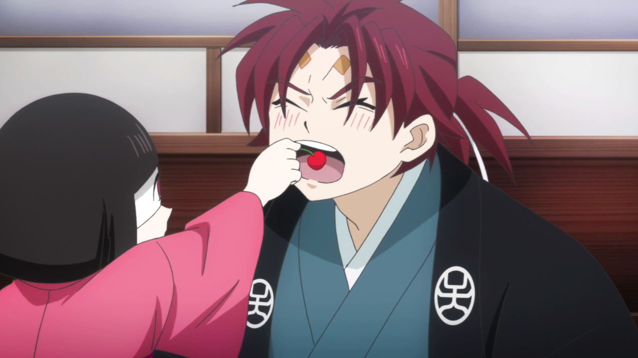 Speaking of the handsome devil, it looks like Hatori is not here to make trouble either. Rather he was pretty good about it though he certainly has a mischievous side. I actually found it quite endearing how he teases Akatsuki, in a big brother kind of way, and gave Aoi an idea what to do with her desert she had made for him. We also learned that he and Shiro were good friends… and we quickly learned why through Akatsuki’s description of him. He is also is Matsuba’s third son, err… “was” until he was disowned after breaking the code… Whatever that was.