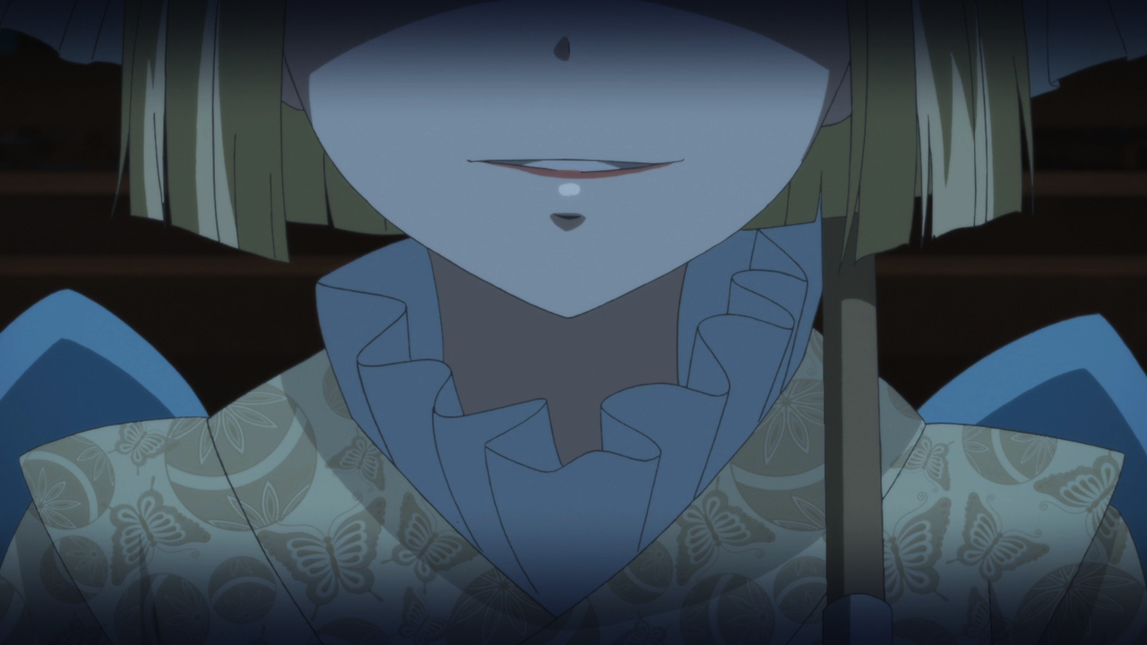 But if there’s one thing for sure, Ougon-douji is dangerous. That evil glint in her eye, the malicious smirk, I don’t trust her the slightest. I don’t know what she has against Aoi, maybe she just hates Shiro and is taking it out on her, but Aoi has come to realize she picked the wrong fight. This woman is extremely powerful, that not even Oodanna could have prevented Aoi from being Spirited Away. Worst of all, she has already attempted to kill Aoi once, what if she tries to do it again? We still don’t know who is behind the assassins, for all we know, it could be her doing as well. Also she took Aoi’s Tengu Fan, whelp. Good luck getting that back…