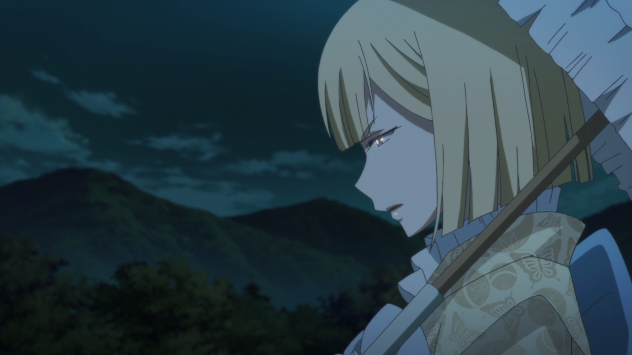 The next big reveal was the fact Ranmaru was not the most powerful one who oversees Orio-ya Inn, and at one point, neither was Oodanna. It turns out the one who created both inns was none other than that blonde bitch, Ougon-douji. And make no mistake, she is a force to be reckoned with. Basically, don’t pick a fight with her. Aoi made a grave error of attempting to challenge her, by luring Nobu out and attempted to hold him hostage and threatened to attack their ship with the Tengu Fan. As result, Aoi was spirited away onto Ougon-douji’s ship and is now being taken by to Orio-ya Inn. What kind of fate awaits her is uncertain.