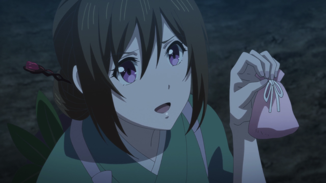 I wonder how long she’s going to be stuck at Orio-ya’s inn. If Matsuba is still at the inn, there may be a window of opportunity for her to be smuggled out to his territory and eventually be brought back to Tenjin-ya Inn. But I get the feeling this half of the season will be predominantly set in the Southern Lands at Orio-ya Inn.