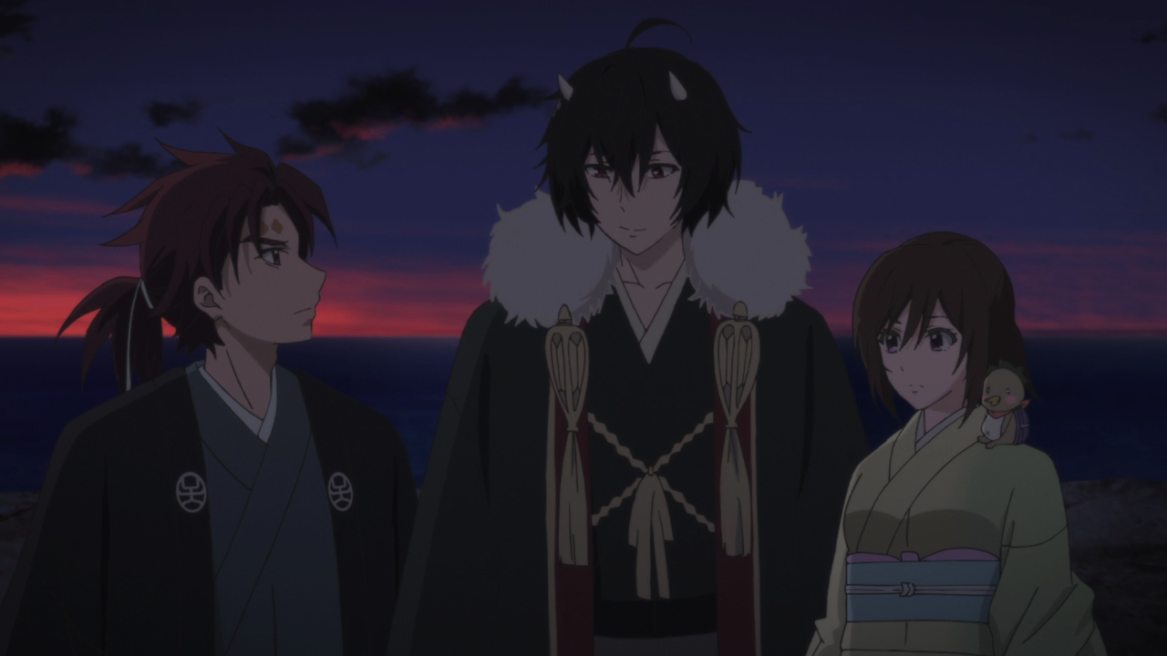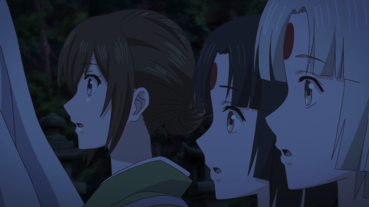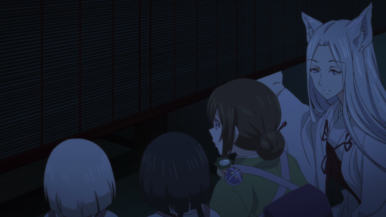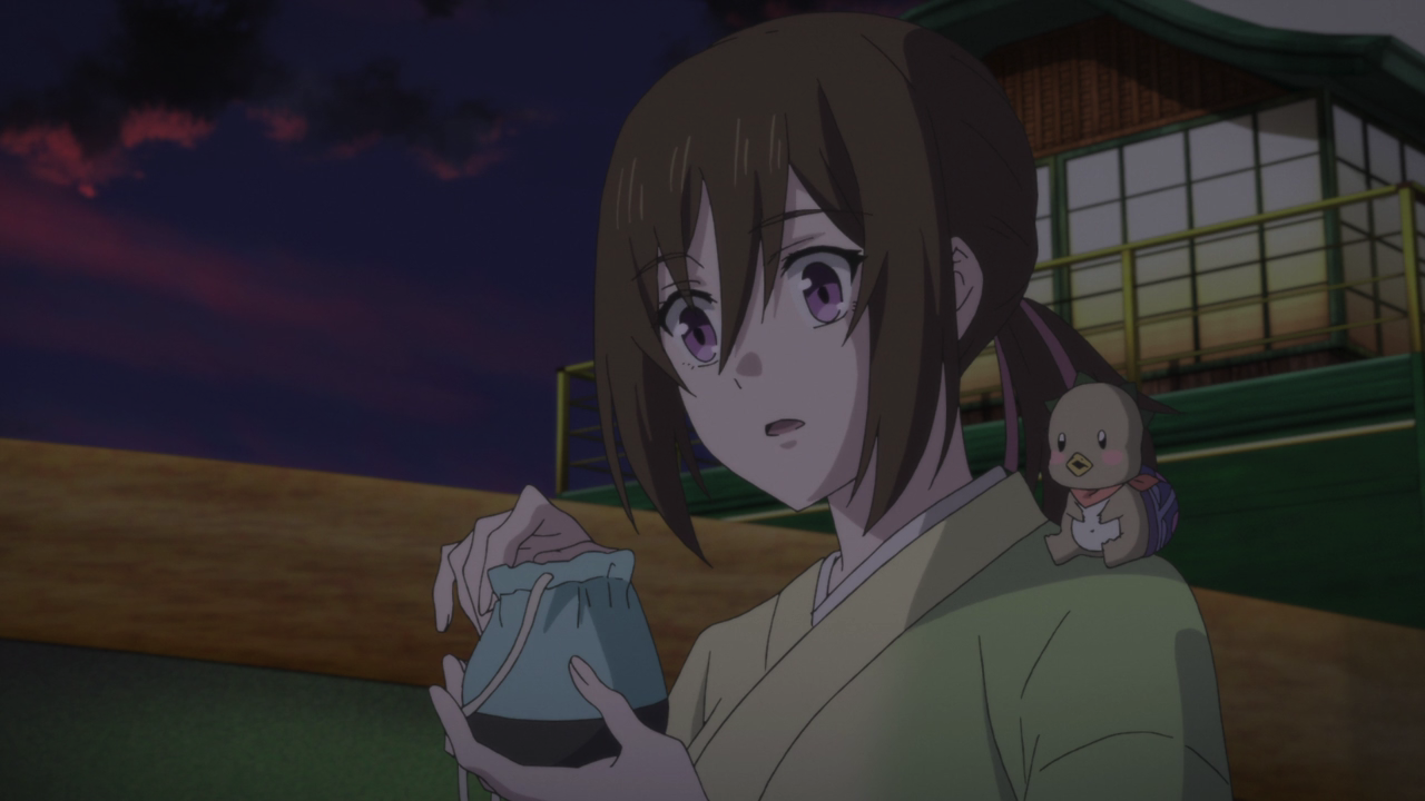 Speaking of the novel, there was something I wanted to address about last week’s episode. Through someone who has read the novel, I have learned the anime cut out the scene (that we had hoped we would at least get to see in the beginning of this week’s episode) where Aoi reflects and realizes what it meant to have seen Oodanna’s illusion. It’s frustrating to see and learn the anime has been continuously watering down or cutting out these romantic developments even the series is specifically labeled as romance. I mean for god sakes, I got Kyoto Holmes that doesn’t even have romance listed in the genre, and there’s more obvious romantic development happening in that than here! (Not to say there hasn’t been any development, there certainly has, but still it’s been watered down or the scenes have been cut out altogether!) I mean it’s nothing new to have adaptions water down the developments or events, but Kakuriyo has certainly turned into one of those cases where yeah, the novel is undoubtedly way better than the anime, which is frustrating to know had they not cut these things out, this show probably (along with being given better budget to put towards the animation quality) could have received a more positive reception, and become a big hit.