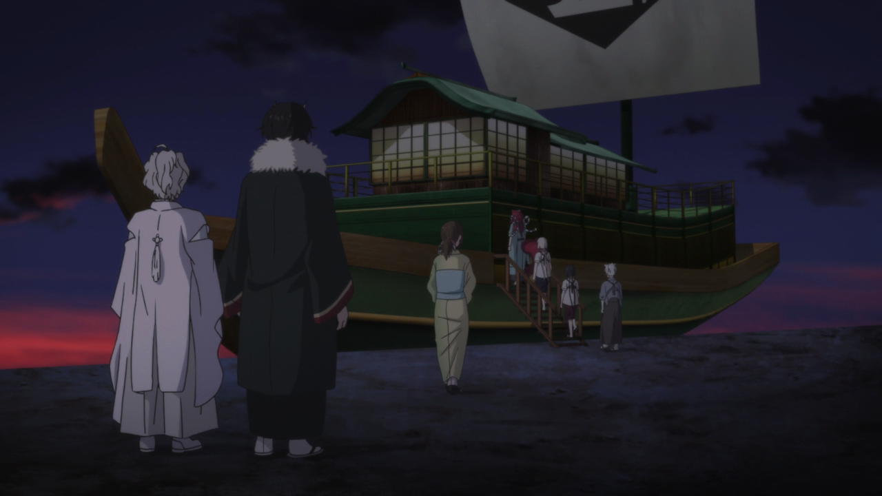 It was good to see that Raiju wasn’t done with attempting to interfere the ceremony, but his plans were foiled when Oodanna and Ranmaru agreed to put aside their tense rivalry and work together to deal with the overwhelming flow of customers flooding to Orio-ya from Youto, including Tenjin-ya guests (who they are taking care of through Tenjin-maru lodging facility). So it’s a major co-op as and it absolutely gives me life!