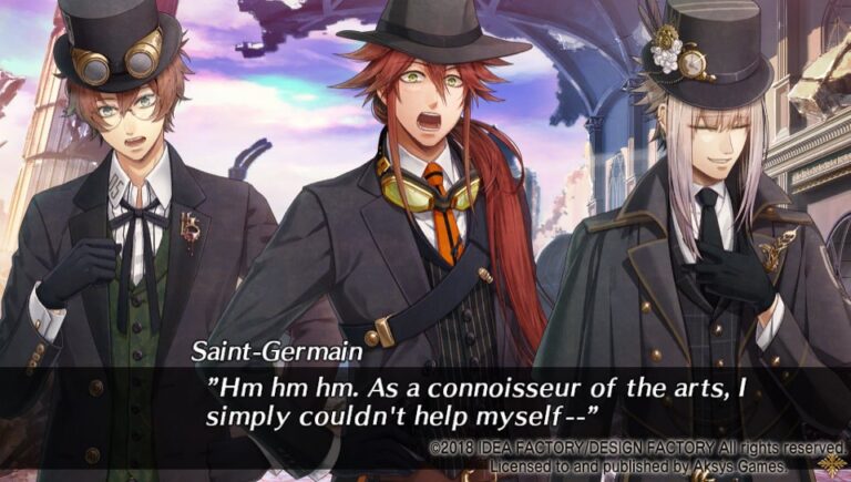 As for their hot “mafia” designs. Of the five, I would say Impey’s was the best. I absolutely loved the tied hairdo too, ah nice refined change of appearance from his wild mane. I was also a huge fan of Van’s design as well, who looked surprisingly good with a top-hat! And Cardia, what an avant-garde dress, she looked stunning, but that hat though, was hilariously massive. The ones who appeared more plain than the rest were Victor (he still look super fine~) and Lupin’s (whose outfit looked more like it was too big for him, I certainly preferred him in his Noble Thief attire), and Saint-Germain’s outfit reminded me of a detective attire, probably because of the cloak, ahaha.