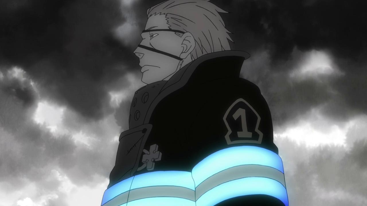 Anyways, I feel like a lot (if not too much) happened in this episode. We first start off with Shinra going up to that guy in the 1st squadron who appeared in his flashback. It’s pretty obvious that the guy remembers him and knows a lot more than he’s letting on considering his reactions. Even Shinra starts to suspect him for knowing more about the fire that supposedly killed his family. And while I do think the guy knows something about it, I don’t think he’s responsible for it. I am curious at what his thoughts of that incident are though. Especially since he was holding Shinra’s hand after the event.