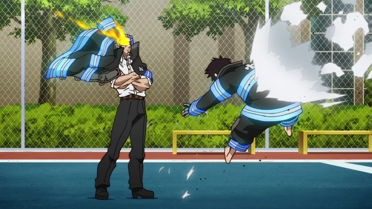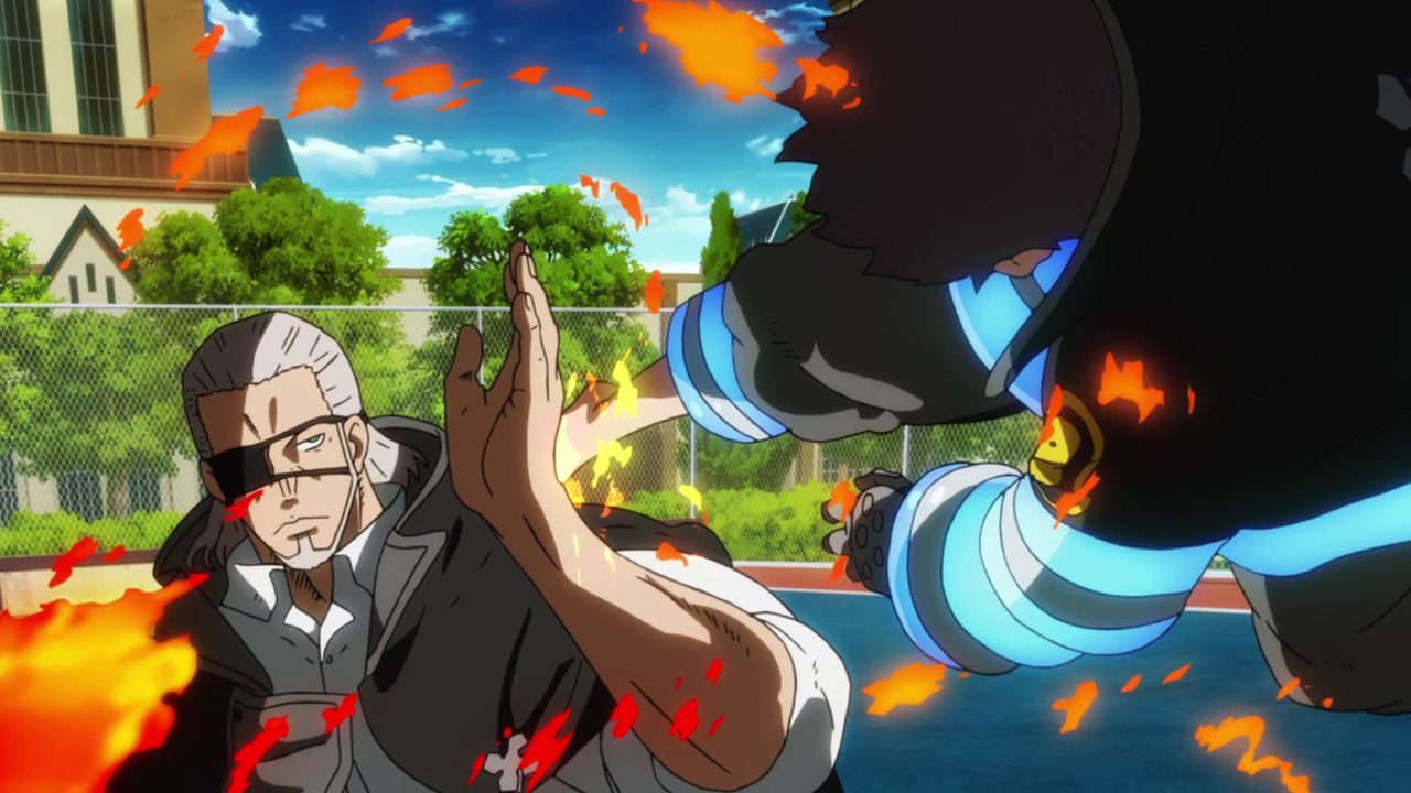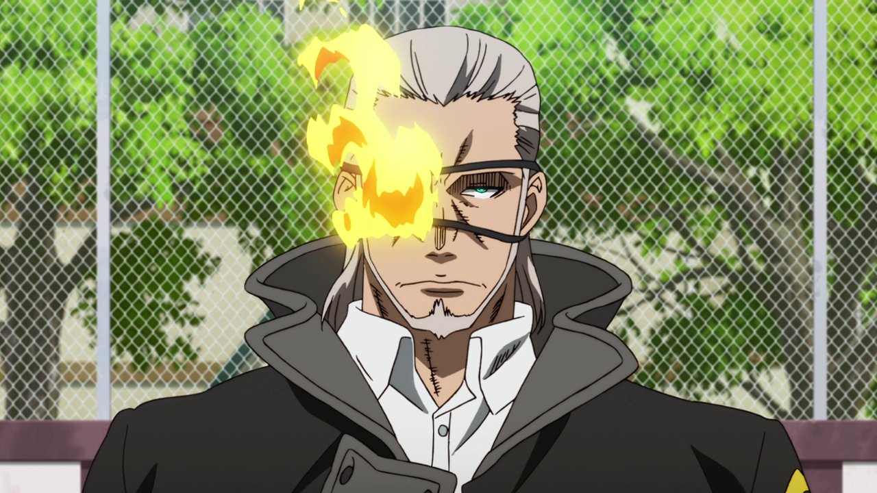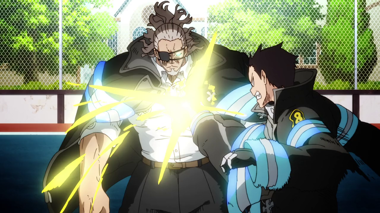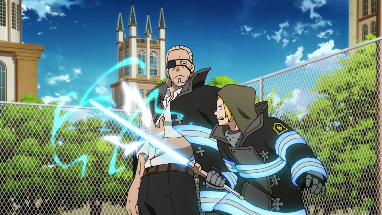 Speaking of which, probably the biggest thing that happened this episode was how Commander Burns basically tanked all of Arthur and Shinra’s attacks and blasted Shinra into next Tuesday without moving. It’s still unclear exactly what power this guy has, however, just the way he carries himself screams “final boss.” It’s definitely mysterious as to what this guy’s power is. However, I think it’s safe to say that this guy is OP as heck. The way that he beats Shinra by just stepping down reminded me a lot of Father from Fullmetal Alchemist. However, he does strike up some decent points when he asks Arthur if his plasma sword is all that he can do and that Shinra needs more growing up to do. While he may be a tad shady, he does have valid points and seems encouraging on the outside. But I guess we’ll see just how valid this guy actually is. Especially since he’s raised a few suspicious flags throughout this episode and in the episode where he made his first physical appearance.