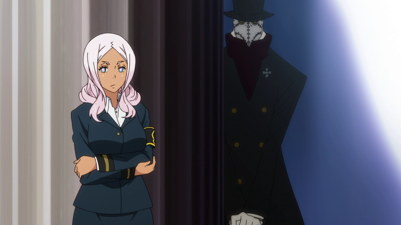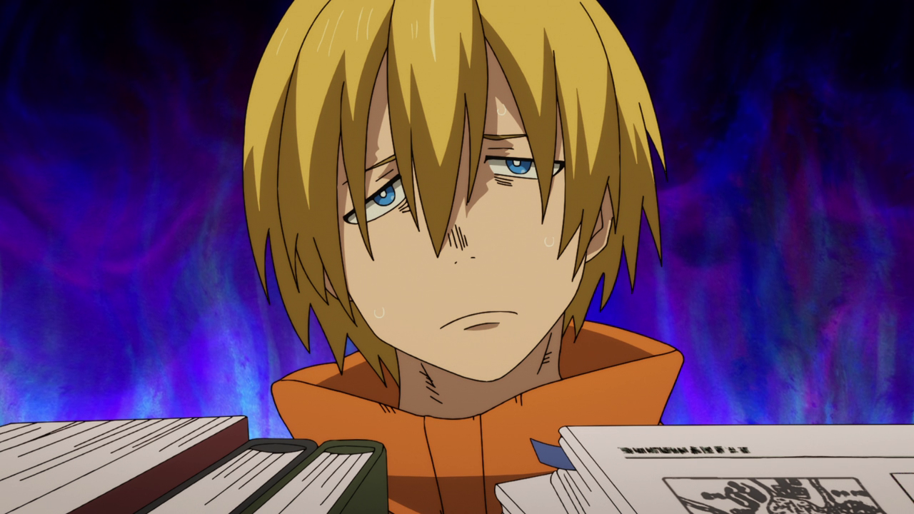 After the meeting, I got EXTREMELY anxious when Obi revealed that he left Shinra alone to look at the Amaterasu. I was immediately like: WHY WOULD YOU LEAVE HIM ON HIS OWN LIKE THAT?! Everyone at the meeting basically stated that the Evangelist was going to start coming after Shinra. You gave them your word you would protect him! OBI WHY?! And when Joker showed up I just threw my hands in the air shouting: I CALLED THIS. Now, I have a few issues with Joker. While he seems to be an interesting character, I don’t like how he’s basically just used as an info drop. He basically spoon feeds Shinra information about his brother rather than Shinra finding out from investigating on his own. I know I’m a broken record, but there’s just too much telling in this series and not enough showing. However, I am thankful that he didn’t try and kidnap Shinra like I was afraid of. But come on people, KEEP A BETTER EYE ON SHINRA.