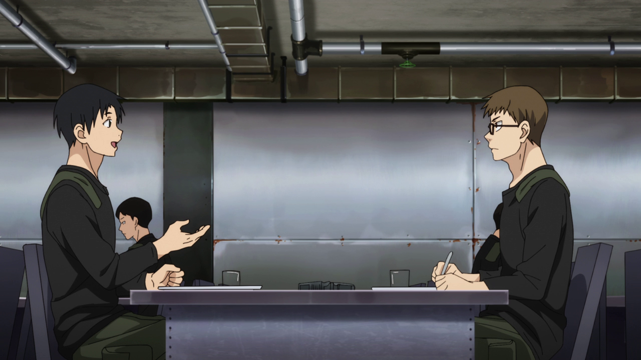 Also, I think Shinra is acting a little too high and mighty. Though I suppose it makes sense as he took down both Hibana and Rekka as what they were doing was morally wrong. However, I think he was a little too quick to judge Benimaru on how he did things. While he wasn’t being cooperative, it was a little presumptuous of Shinra to call him a “do-nothing.” Not to mention it was definitely out of line for Shinra to basically yell at Benimaru he’s going to beat him down so he’d acknowledge him. Um, exactly what right do you have to say that, Shinra? And why did no one stop him? He wasn’t even doing anything that would be considered wrong compared to what Hibana and Rekka did. Shinra, you need to chill out and stop trying to pick fights with the captains. Yes he was being stubborn in not trusting the 8th to help, but I don’t think that warranted Shinra’s actions.