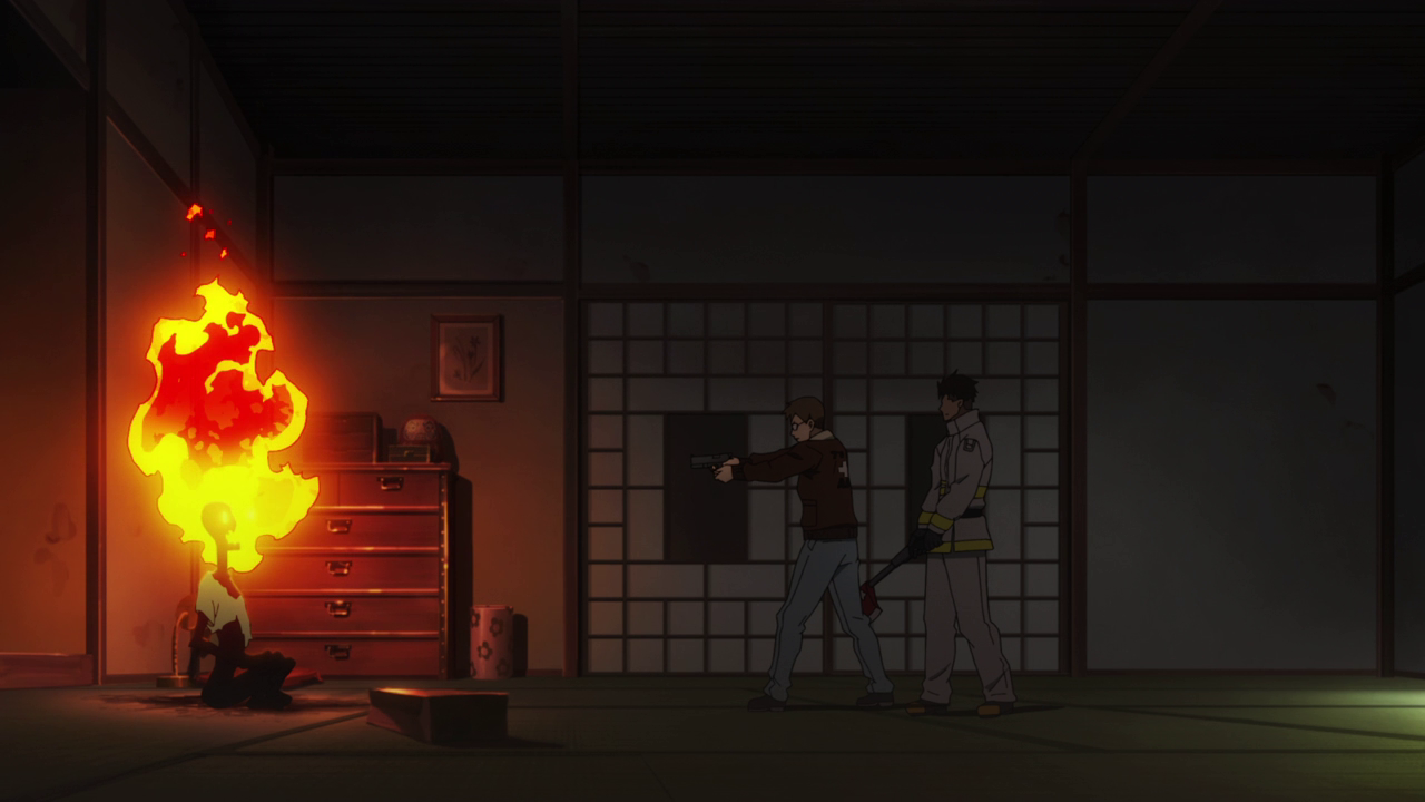 Hinawa was definitely fleshed out more as a character with a little of his backstory. I’m surprised by how much he emoted considering we’ve only seen him with the same blank expression on his face. It’s also very heartwarming to find that how much he cares for other people since he felt like he couldn’t shoot his friend with an unbaptized gun. Not to mention we learn exactly why Hinawa is more ruthless against people than he is on infernals. Considering how Infernals are basically feeling their entire bodies burn alive, it’s really no wonder why Hinawa feels more pity for them and would rather end their lives quickly instead of using brute force. Not to mention those other fire force members in the 3rd seemed to only care about the amount of points they get from taking out an Infernal, which probably did not sit well with Hinawa. It’s kind of like the saying of “who really is the monster and who is the man?”.