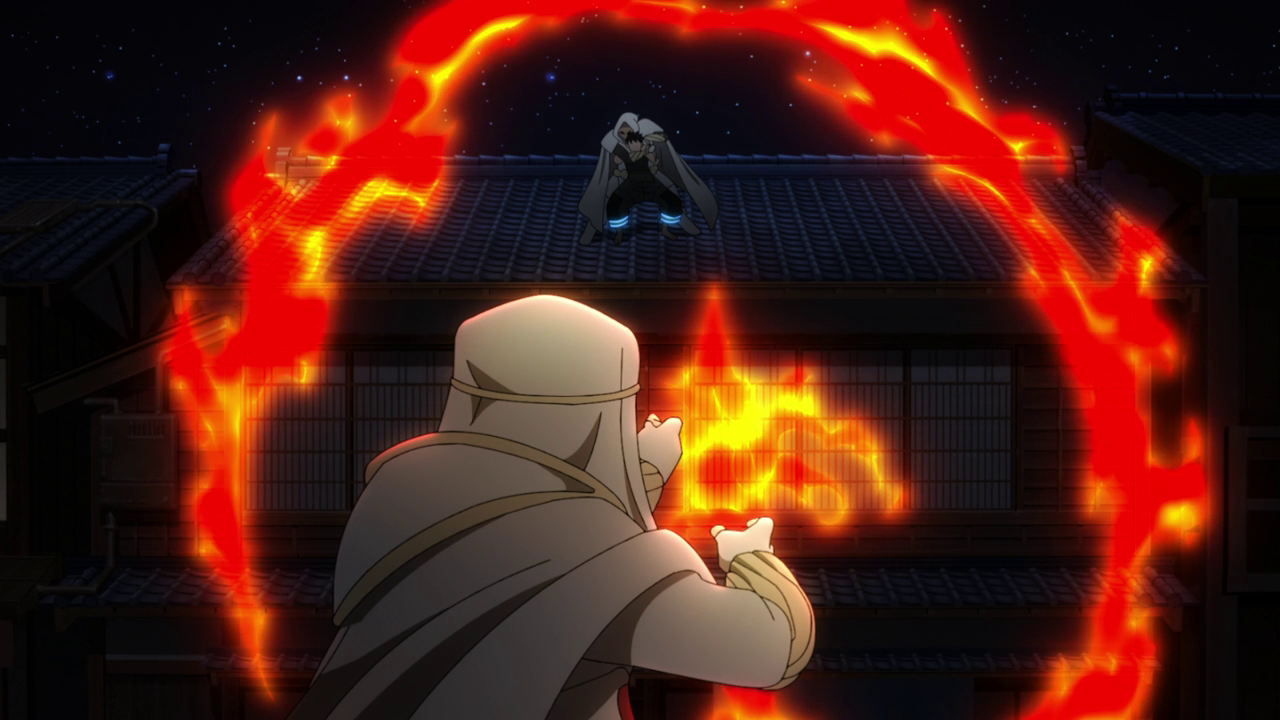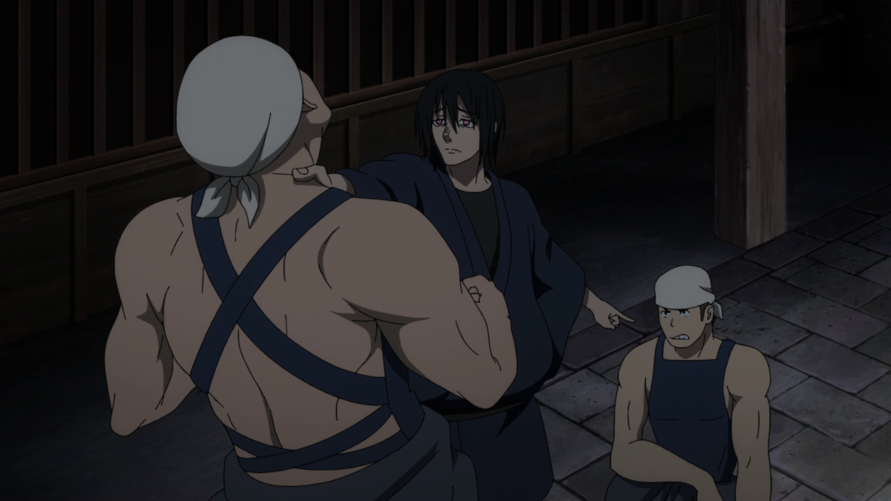 Just as this one commenter said, we do learn what the heck happened with the whole misunderstanding between Benimaru and the 8th. The whole town is filled with arguing people over misunderstandings because lookalikes have been placed through out causing mischief and breaking trusts. However, I still think they could have shown that scene in the previous episode better to make more sense like if the doublegangers started running and then turned into an alleyway to lead to Obi and Hinawa before disappearing to let the real ones take the heat (literally) from Benimaru. Something like that to make more continuity sense scene-wise. However, this show has always had really wonky scene continuity so it’s just me pointing out the obvious yet again.