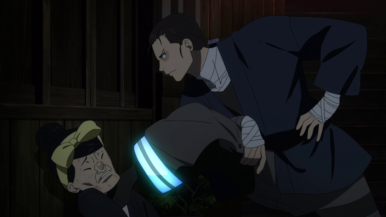 They’re definitely allowing this arc to have more breathing room than Hibana’s. With Hibana’s arc, it was like BOOM BOOM BOOM, you have all the information about her and why she is doing the things that she does. However, with this arc, we slowly got to know a little more about Benimaru and how much he cares about the people under his jurisdiction. And now we’re learning more about his relationship with Konro and just what happened before he was made captain of the 7th. The way that Konro and Benimaru care for one another is very touching and they both have such high opinions of the other. They work really well as a team and I definitely get the feeling that they’re trying to show that they work the best as a team rather than having one over the other. Especially since in the captain’s meeting, Benimaru was the only one to show up with a subordinate while the others came alone (bar Obi). I’m still a little confused as to why Konro thinks Benimaru is the best to lead the people since in this episode, when all the infernals were erupting all over the place, Benimaru couldn’t get the people to calm down and they just scattered all over the place. So hopefully they’ll address that in the next episode. Which I hope will wrap up this arc because if not then they’ll definitely be stretching it out for way too long.