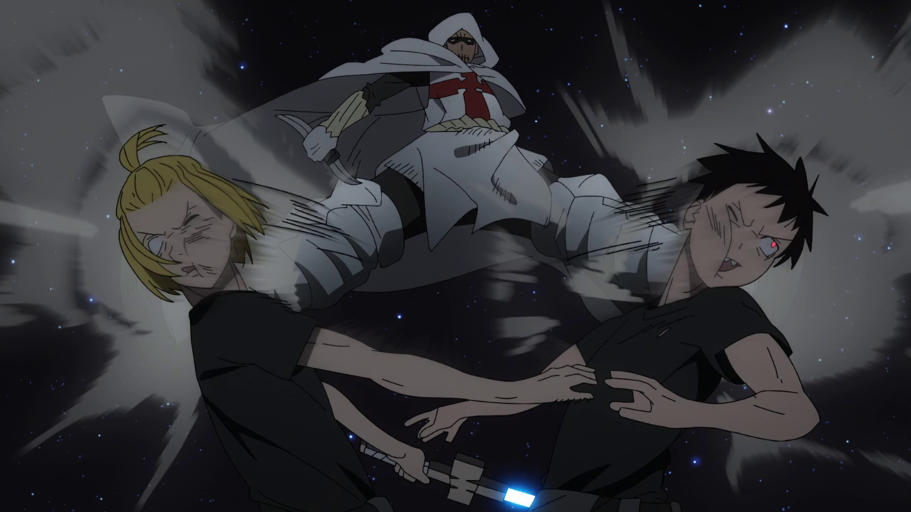 Crap really hits the fan when infernals start popping up in bulk and the cult uses the chaos to their advantage to snipe the 8th’s members. I had a good laugh when Maki transforms the arrow into a sputter at the last minute and just gushes about how it leapt into her arms. However, I felt extremely annoyed by Shinra and Arthur’s fight against the cult members that had attacked during the Rekka incident. It’s like: THIS ISN’T THE TIME TO BE FIGHTING WITH EACH OTHER. Sure they need to work on their teamwork in fights, but they really should not be yelling at each other when VERY DANGEROUS assassins are literally attacking you! Not to mention they kept punctuating the fight with supposedly “funny” moments with them getting in each other’s way or yelling at each other and it just drove me insane. I hate that this series keeps inserting unnecessary things in the middle of very serious fights. It also just makes the fight lose its momentum, which is a shame. And for some reason the assassins just LET them talk to each other and watched them when they could have used that opportunity to attack. UGH, the first half of this fight was a hot mess.
