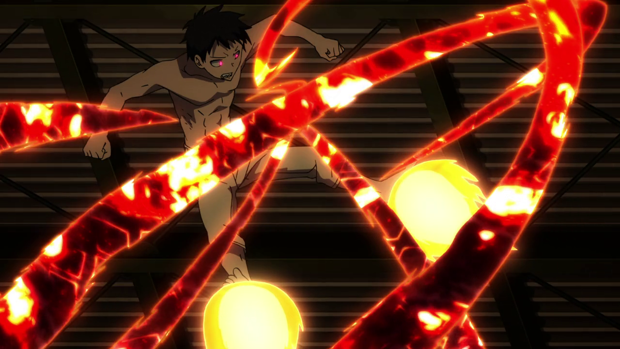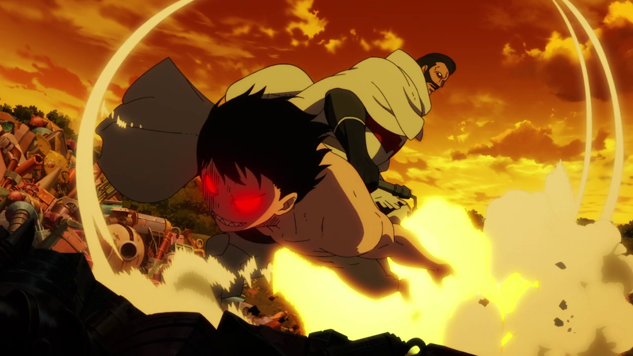 I do like that Shinra didn’t get out of the situation on his own. Especially since he didn’t bulldoze his way to victory like he typically does and did need help from Hibana and Vulcan when he got captured. Though I suppose he was easily stopped in Vulcan’s workshop due to the cramped space there. But nevertheless, he still needed help and gave way to teamwork rather than Shinra pulling his one man army stunt. Hibana also proved to be a good ally this battle at the cost of Arthur lol. Now this is the kind of thing I had hoped to see at the beginning of the series. The opening promised me that the team would often come together to take down infernals. However, from the very first episode, it portrayed a completely different dynamic than I would have liked. It gets tiring real fast, so I’m glad they finally changed it to more of a team effort this time around. I also appreciate that Shinra couldn’t get away on his own and had to be helped by crazy scientist guy.