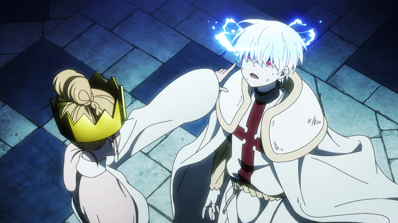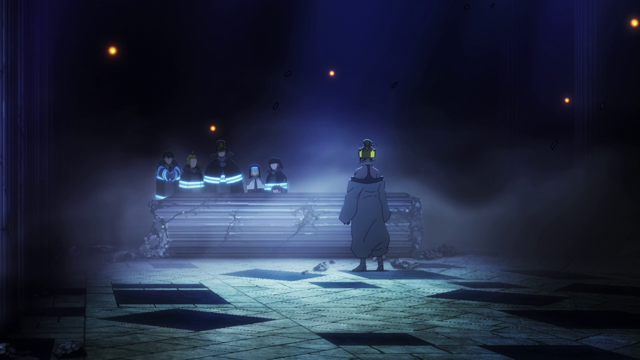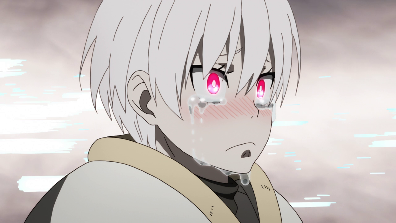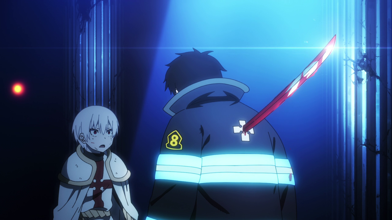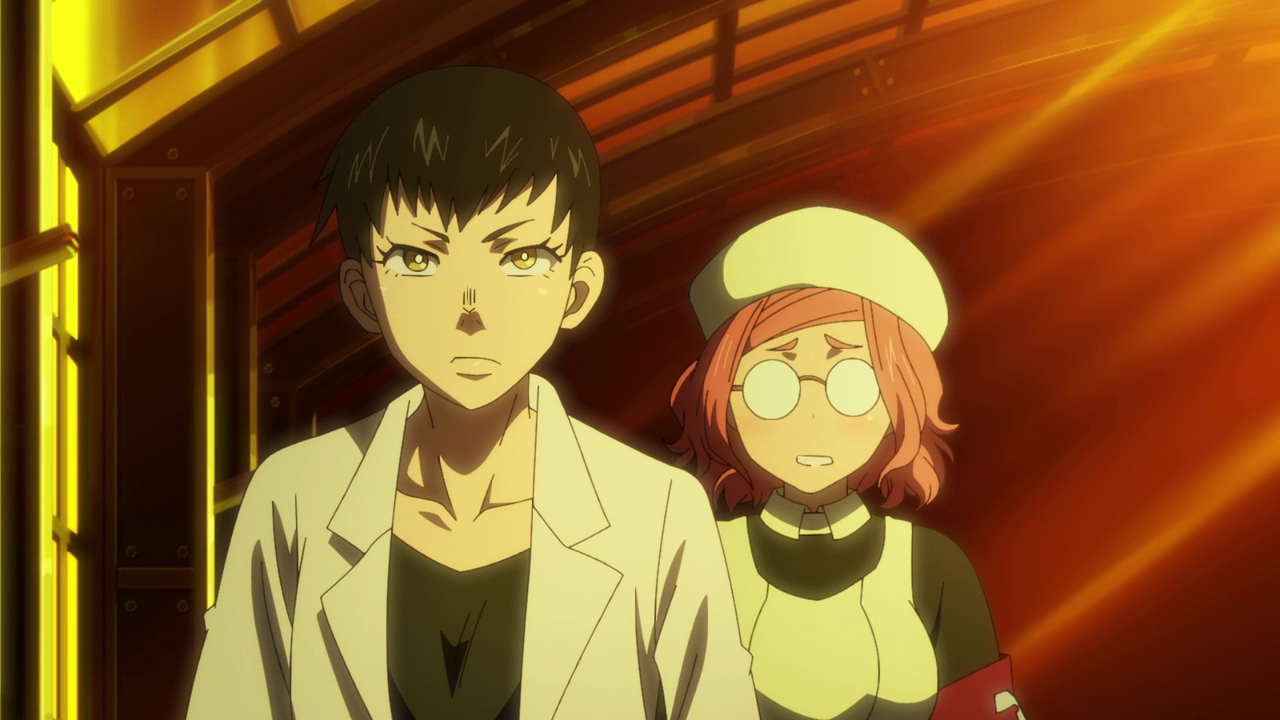 Anyways, end up going from bad to worse when Haumea shows up. Now I really liked the shot of Shinra and Sho standing on the same side of the pillar for the first time, separating them from where Haumea was standing. For the past couple episodes, they were always separated by a shadow of a pillar. Great symbolism, showing that the two are finally on the same side… sadly that doesn’t last. I was both frustrated and not surprised when Sho is basically forced to go back with the White Clad, even going as far as having his time stop ability stripped from him and then re-brainwashed by Haumea. The two brothers had finally reconnected, only for Sho to be taken away again. It’s sad, but definitely predictable as it felt way too soon for Sho to switch sides.