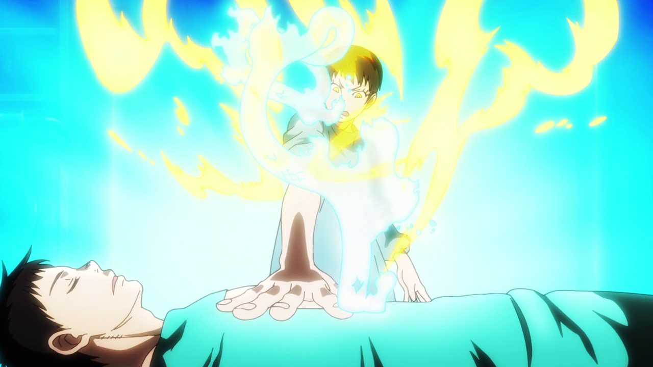 The rest of the episode serves as a cool down from all the previous insanity and a well deserved rest up for Shinra after being stabbed through the chest. We get a small peak at the 6th division and how they’re basically the fire force’s medical staff in a sense. Not sure how I feel about Huang’s ability considering it basically just goes in and heals the pyrokinetic body from the inside without much explanation on how. How convenient… One can argue that for Recovery Girl’s ability in My Hero Academia. But unlike what we saw here, Recovery Girl’s ability has a limit and if Izuku continues to destroy his body, there will only be so much she can do until Izuku pushes himself to permanent damage. You shouldn’t reward reckless behavior without some sort of consequence. I almost wish that Shinra got paralyzed a little somewhere to show him, DON’T DO THINGS THAT DESTROY YOUR BODY. So it was frustrating that he came off the procedure with no problem. Not to mention he’s basically already in fighting shape despite being unconscious and bedridden for THREE DAYS. What is this?!