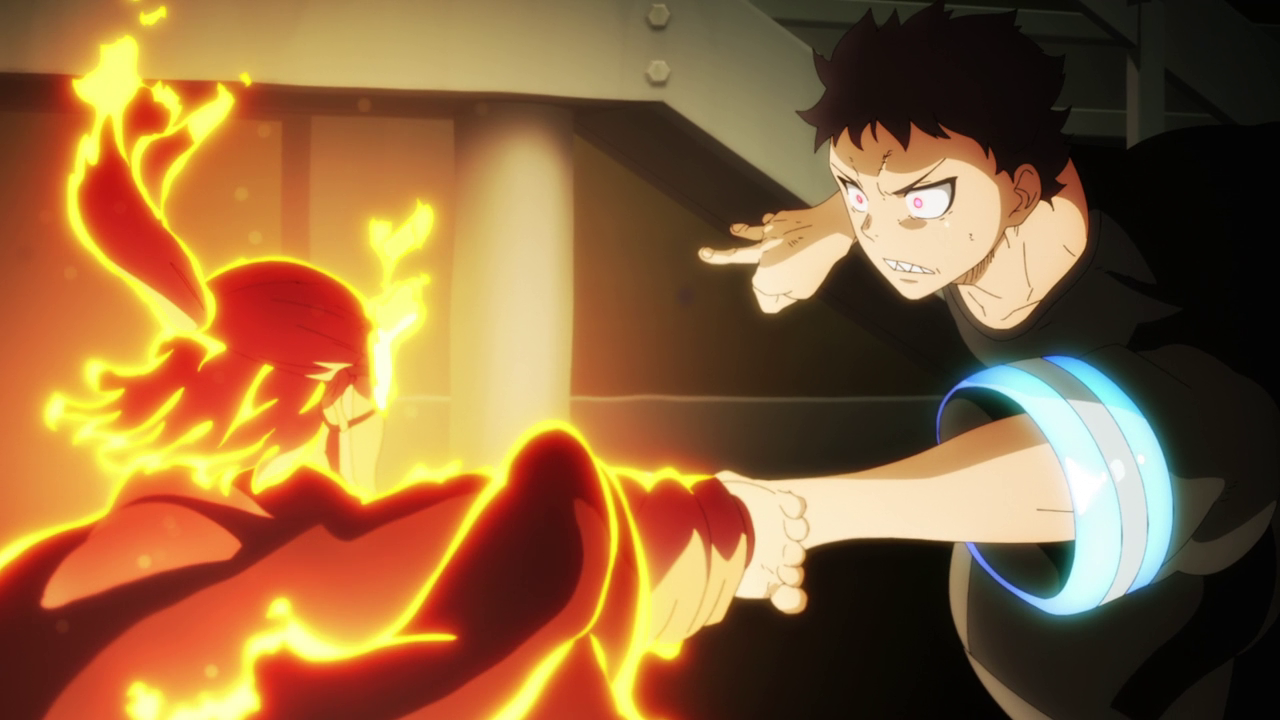 I apologize for my lateness, but I didn’t anticipate TWO freaking episodes coming out on the same day. Not to mention I injured my finger, making it extra difficult to type out my review for this series. In any case, where should I start? I’m actually surprised that the fight between Shinra and Sho didn’t last much longer. But I guess it makes sense since they’ve been fighting for an episode and a half now lol.