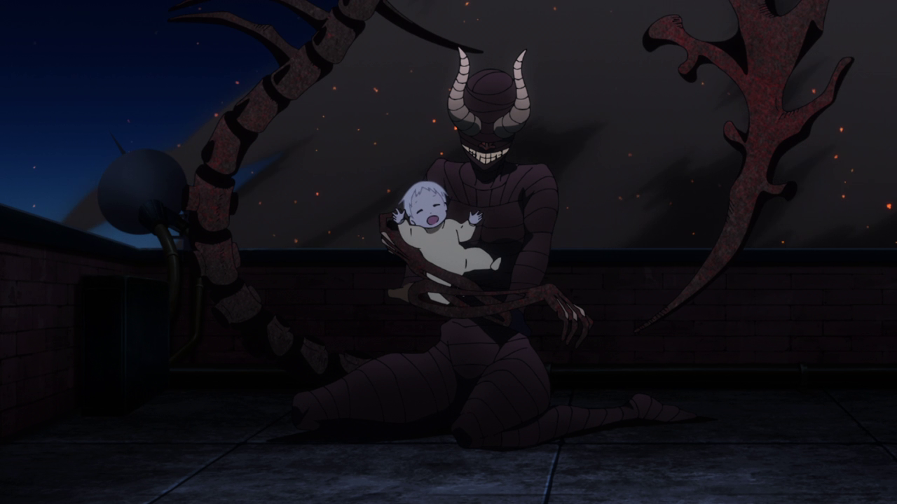 Though to be honest, I KIND of had an inkling in the back of my mind, but didn’t say anything about it out of fear of not wanting to sound dumb. But I guess it really turned out that way with Shinra’s mom being that infernal he saw on that night. It really only made sense from what we could grasp from his flashbacks with his mom gesturing to him from the flames and then that infernal appearing out of no where. Though I didn’t expect that the same infernal that appeared in Shinra’s nightmare fuel dream was actually his mother.