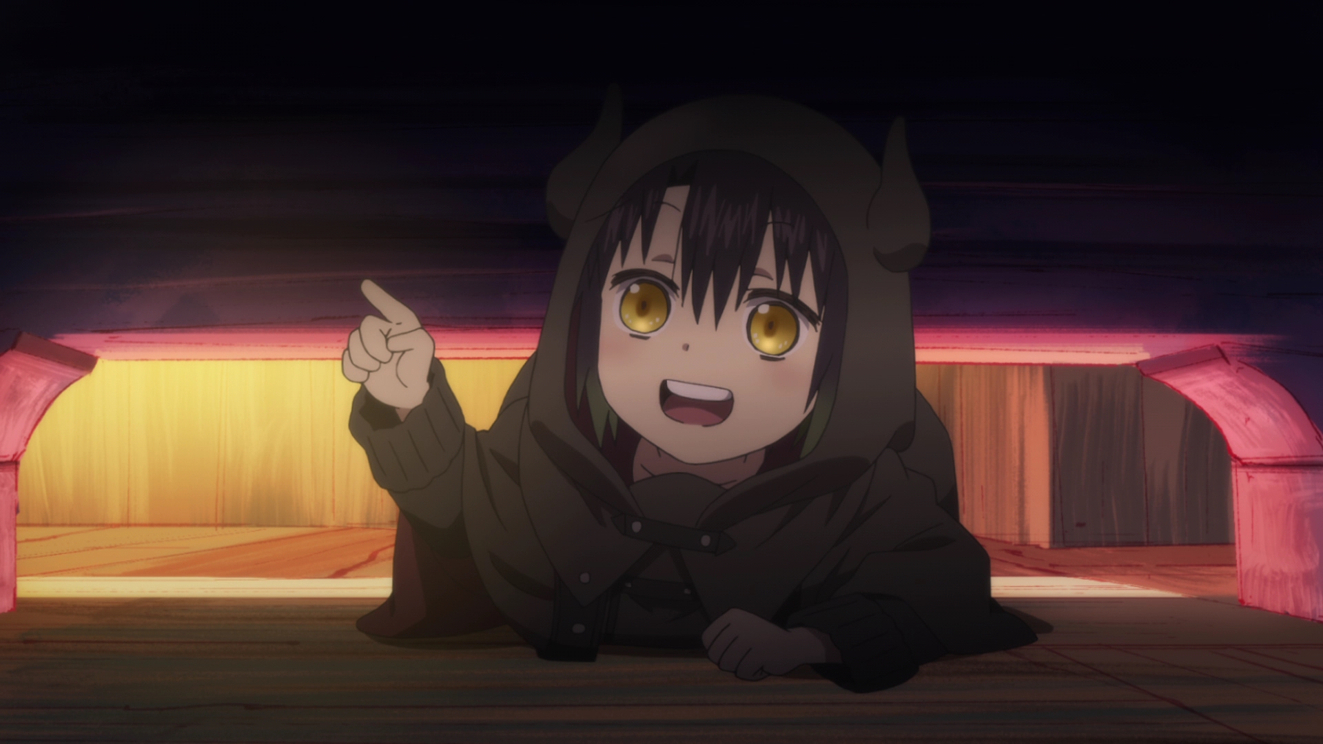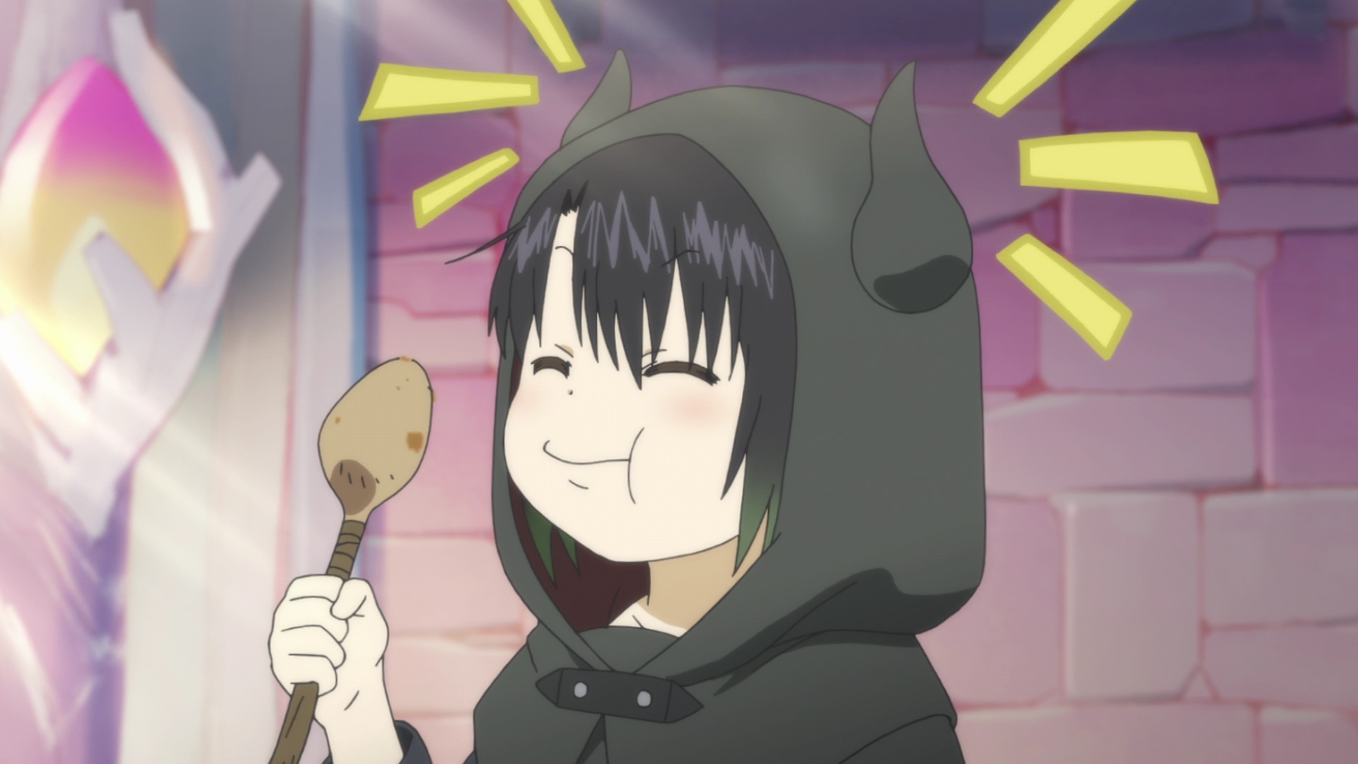 Somali is an absolute cutie. I always find it so funny when people complain about kids in anime. They get irritated that kids…act like kids. Somali is only a child, of course she’s going to be a bit of an annoyance when she wanders off by herself, but kids need to learn that isn’t right. But kids are curious, and loud, and Somali is just that. A kid. Of course Golem is also learning this through his observations of her, as he’s slowly learning how to be a father. I think it’s so funny that Golem explains to others that Somali is of the minotaur race, and the horns on her hood are proof enough. Because if they find out she’s a human, it’ll be a huge problem. This is one part of the episode that I thought felt forced was the sudden exposition of what happened to the humans, where one of the bar patrons asks (why wouldn’t he know?) and the waitress begins to explain in detail. The story being that the humans and creatures lived together, but were not aware of each other until a human arrived. Racial tension ensues along with war, and it sounds like all the humans were killed/eaten/enslaved. One of the creatures nostalgically talking about treating humans like pets was…gross. But quite telling. Golem says he’s on a journey to find humans, obviously most likely wanting to bring Somali back with her own kind.