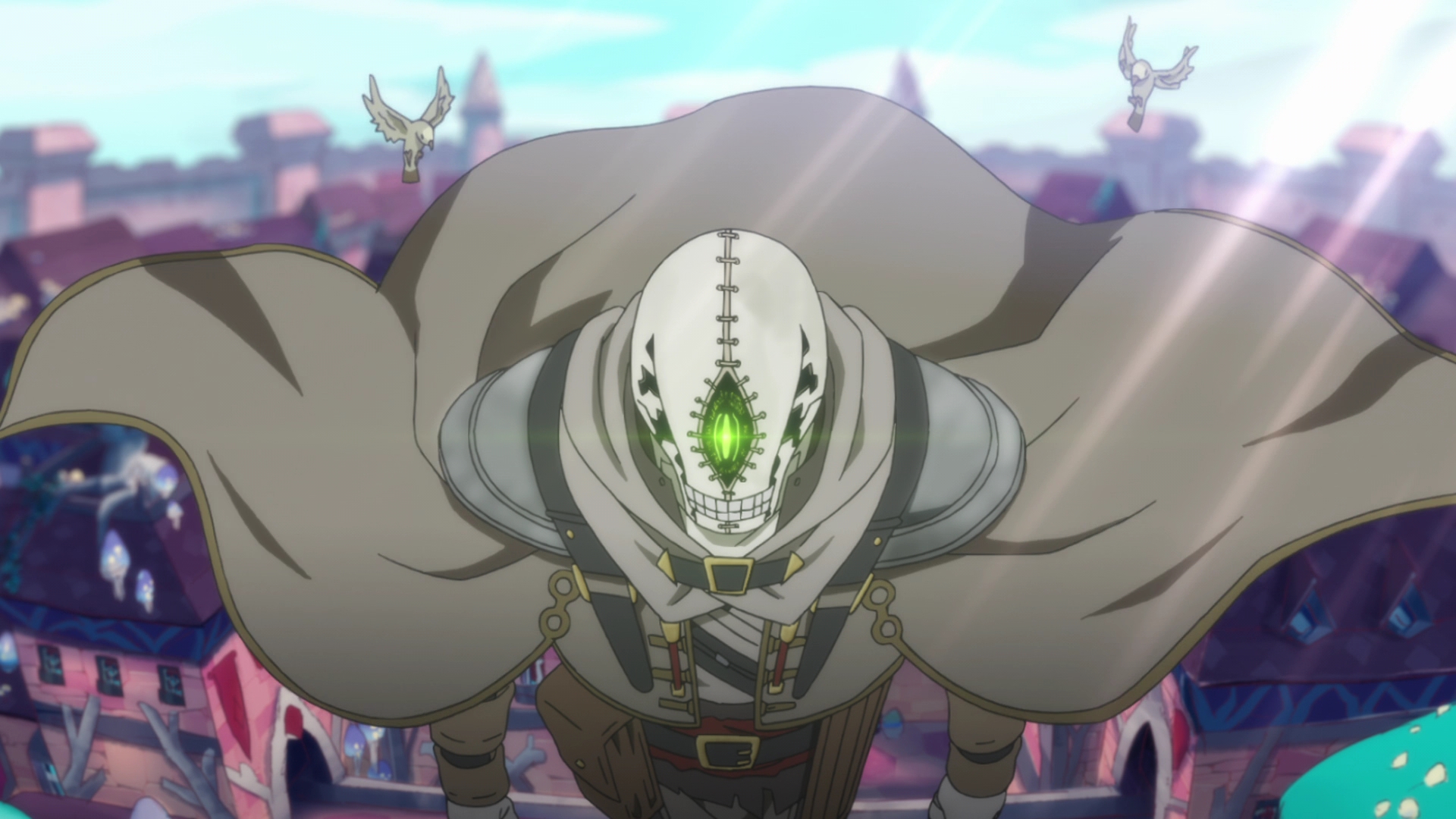The rest of the episode is pretty simple, as we get to see Golem and Somali bond, shop, etc. Golem is interesting as he speaks very robotic, but I still was half expecting him to mutter yare yare as Somali ran around and left his side. Because…Daisuke Ono. Yeah. But yes, even though he very much acts and speaks like a robot, assuring Somali that golems do not have any emotions, it looks like that’s not entirely true with how he acted a couple times. He did express fear during their stay at the inn, on high alert for Somali’s sake that even she recognized. And how he even reacts to her calling him Dad. I’m sure he’s going to change slowly. But for now, it’s a little funny how serious he is against a loud and happy child. Their interactions together are very sweet.