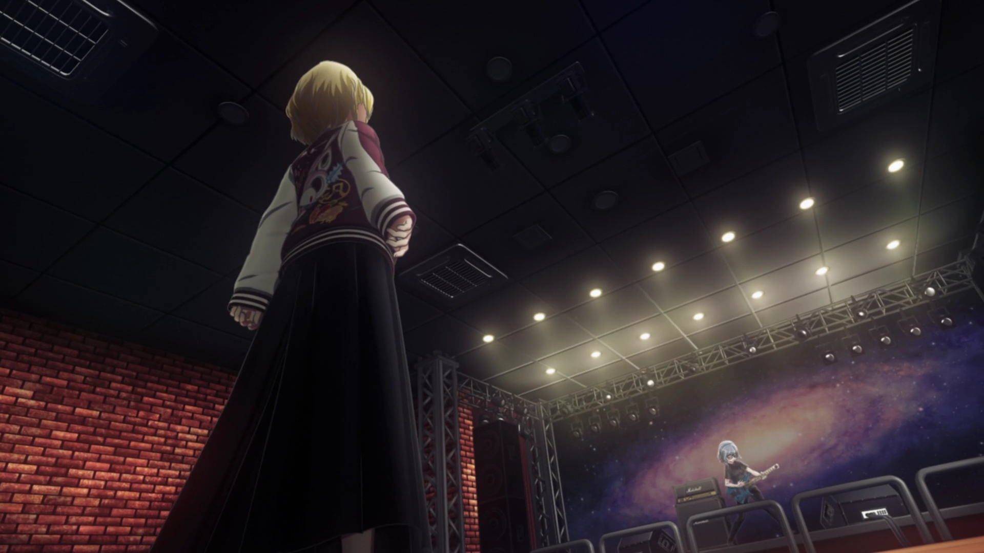 Rokka heads over to RAS’ place with Masking’s help and she pleads to Chu2 for another chance, but she has a bit of a stronger personality now. The other members are more willing to give her a chance so Chu2 allows her to play guitar, this time on her own. Finally, Rokka kills it. It’s awesome hearing just these instrumentals without all the singing, just pure guitar goodness. Honestly, Rokka really is amazing at what she does and finally she was able to prove herself and she gave it all she had without all the inner conflict. I’m still not the biggest Rokka fan, I think she’s a nice girl and all, but I do admit that she can be a badass and I am happy for her. Now she’s finally got what she’s always wanted, which is to be with a band. Even though she’s a temporary guitarist for now…