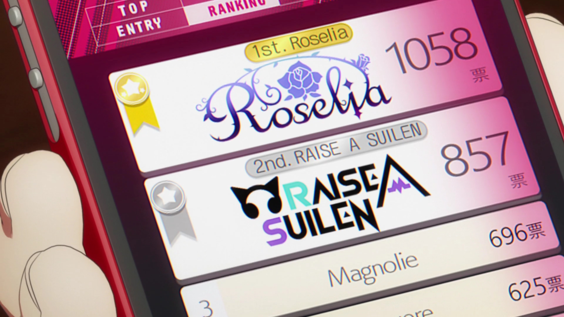 Again, simple episode but I’m glad Rokka made that big step. Yes, Popipa helped her and all but she still did it herself. And her friendship with Popipa is really sweet. The Bang Dream competition is already underway it seems like and the preliminaries have started. The bands that entered can pick a venue and perform as many times as they want in order to rack up the votes, and unsurprisingly Roselia is dominating the votes, with RAS right behind them. Popipa didn’t perform until the end, and they didn’t go up against anyone but had a full room, so they should be fine but it’ll be interesting to see how many more performances they’ll do and how high they’ll make in the prelims.