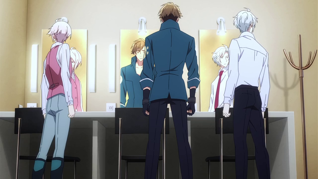 Despite the tight synchronization in their dancing in the previous episode, the three still weren’t mentally/emotionally in sync yet. Portrayed very well in the shot where they’re all shown in three separate mirrors and looking in different directions. Each one has a very different view of being an idol and are all entitled to their own opinions. None of them are necessarily wrong in their outlooks, but it’s easy to tell that it’s creating a rift between the three since they don’t really TALK about their views and instead just argue. They’re still a new group and haven’t quite gotten used to each other yet. Not to mention that Tenn and Gaku just cannot accept the other’s views. Children please…