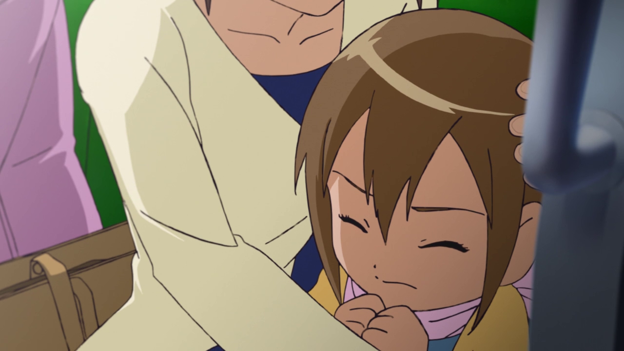 The mood of this episode went from pleasant and light-hearted to series REAL FAST. We first get to see Taichi packing for summer camp and then meet Iz- Koushiro, only for them to find out that electronics are going haywire in the city along with the train systems, which just so happens to be where Taichi’s mom and sister are. The scene where Taichi and Koushiro are at the train station and Taichi jumps the meter… that was such a good scene. I love how they didn’t tell you “it was because he had courage,” they just showed it with his soon to be crest pulsing in the background and the sheer determination he had to save his family. It was such as a great cinematic shot with foreshadowing and a great portrayal of character.