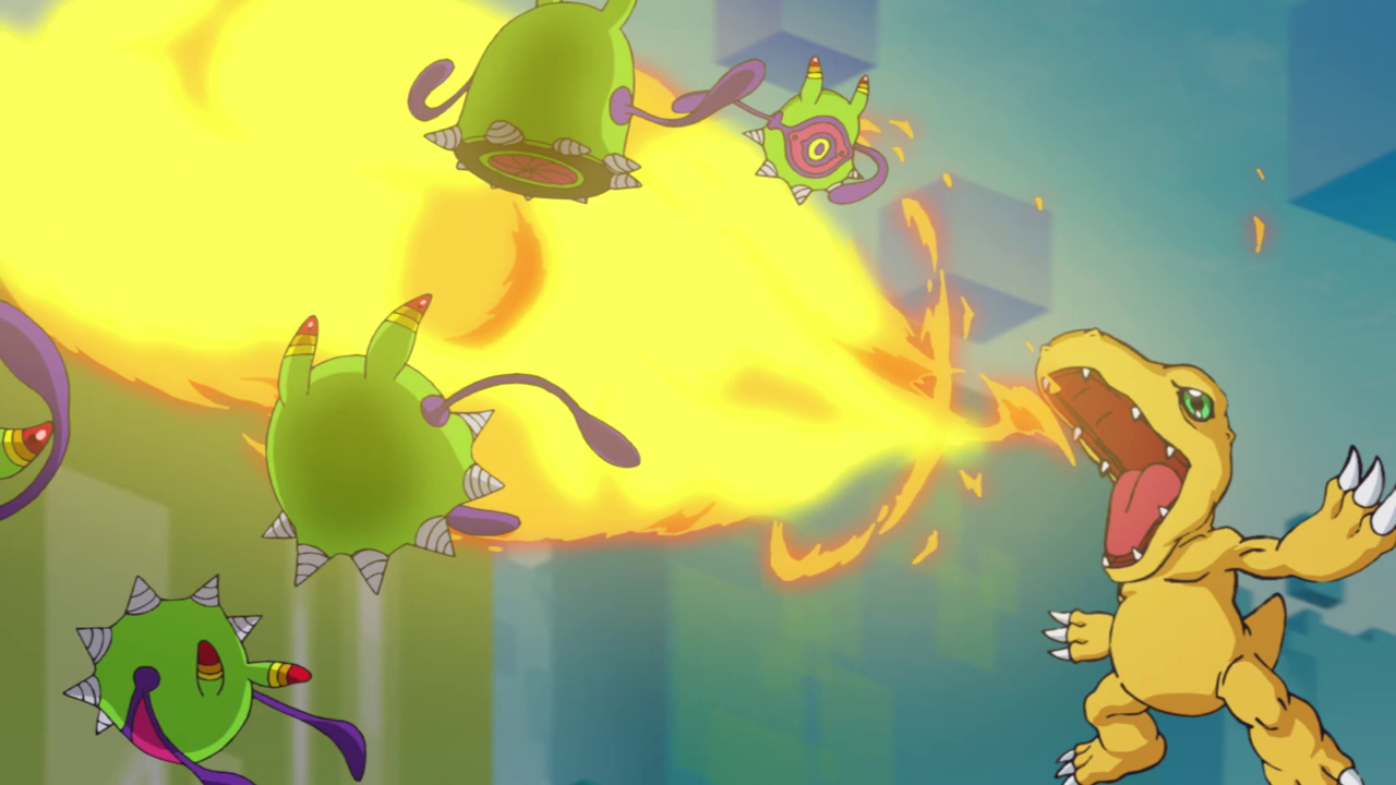 The meeting between Agumon and Taichi was really cute but also heartfelt that it was because Taichi risked his life to save him as Koromon (can’t forget that it means “brave little warrior”) and boy was the music GREAT in that scene. When Agumon started fighting the virus Digimon, it was made very obvious that the animation in this series is SO MUCH BETTER than the original and I’m living for it. It’s so much more dynamic and detailed. Like the different line qualities with the subtle movements to show impact was great. I also appreciated that Taichi was actually helping Agumon fend off the virus Digimon instead of just sitting on the sidelines cheering him on. Though it was pretty weird when he started running alongside Greymon into the fight. Like dude, what can you even do in this situation lol.
