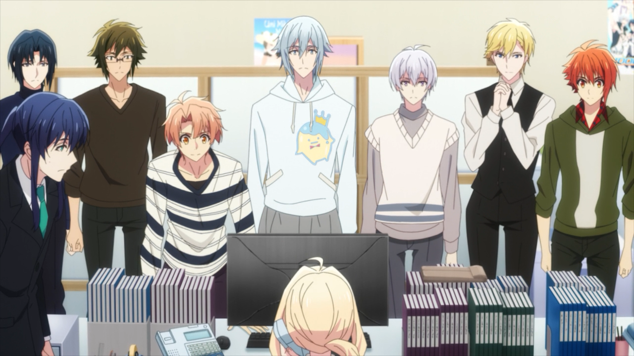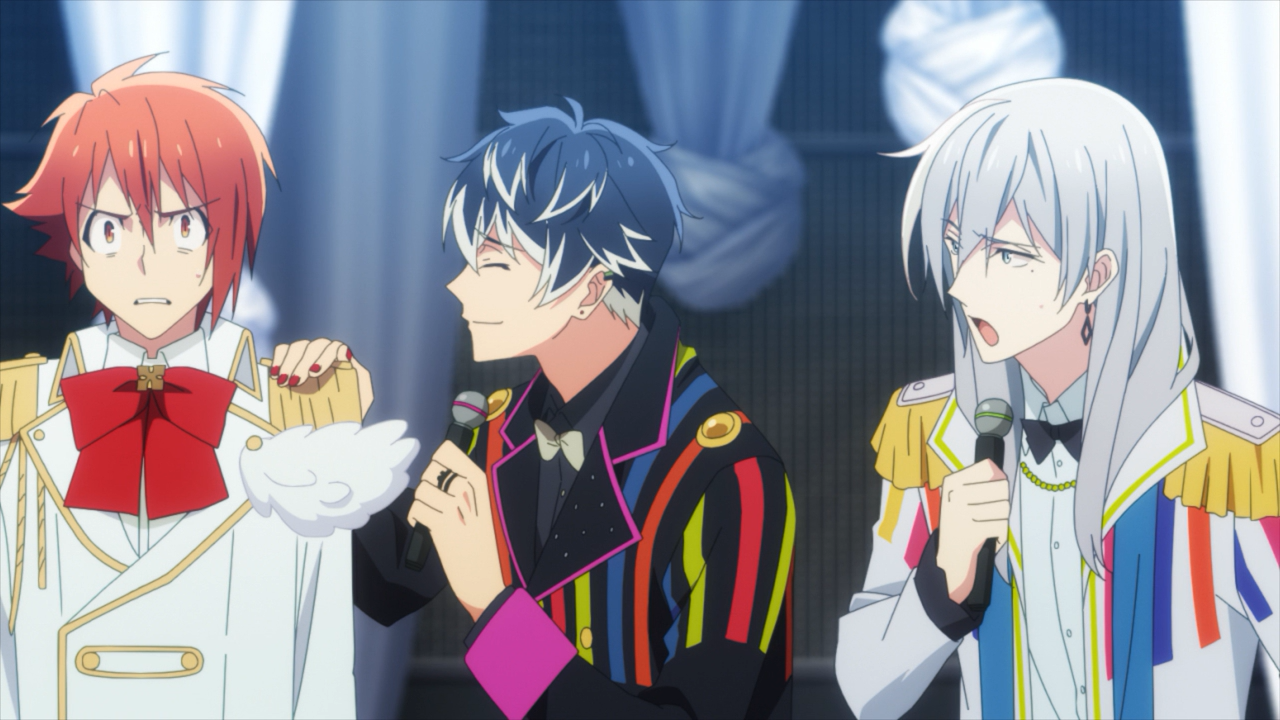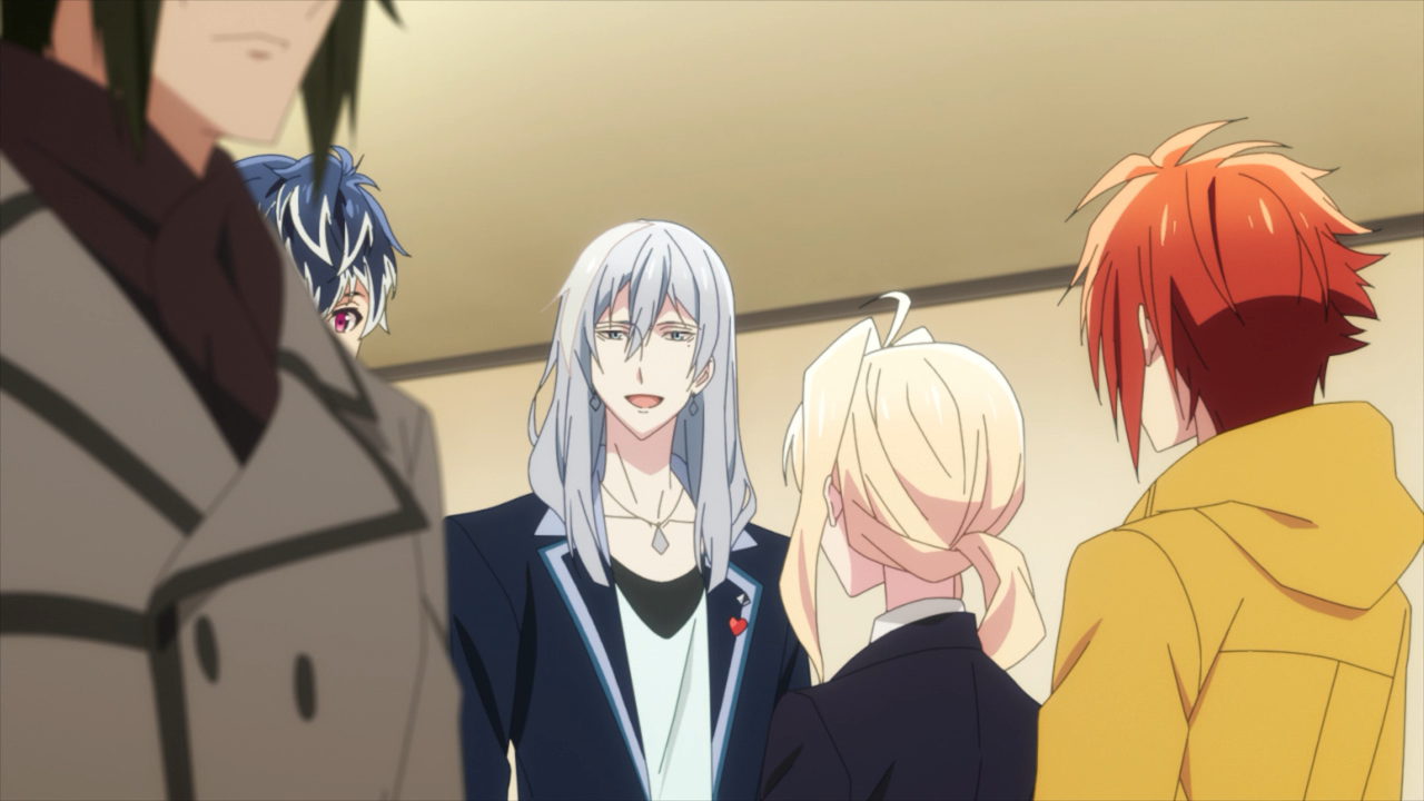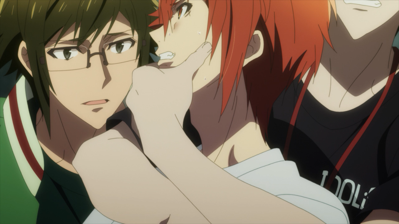 So it comes as no surprise why they are being forced to re-arrange their line-up and remove Riku from the center position. This could be temporary until they sort out a way to balance Riku’s role, or permanent change, either way this is not an easy decision. This is going to be extremely hard on him, and in ways puts pressure of his replacement (as we know, will eventually be Iori) to do as well, if not better than he had. Another concern I have is the increased frequency of these attacks. As I mentioned above in the first episode, I don’t know whether this is a sign of an even graver health condition that threatens to end his career as an idol, or deteriorating because of how jammed packed their schedule has been since their popularity had exploded. We’re only on the second episode, and I am already extremely stressed out about Riku and how this change is going to impact him.
