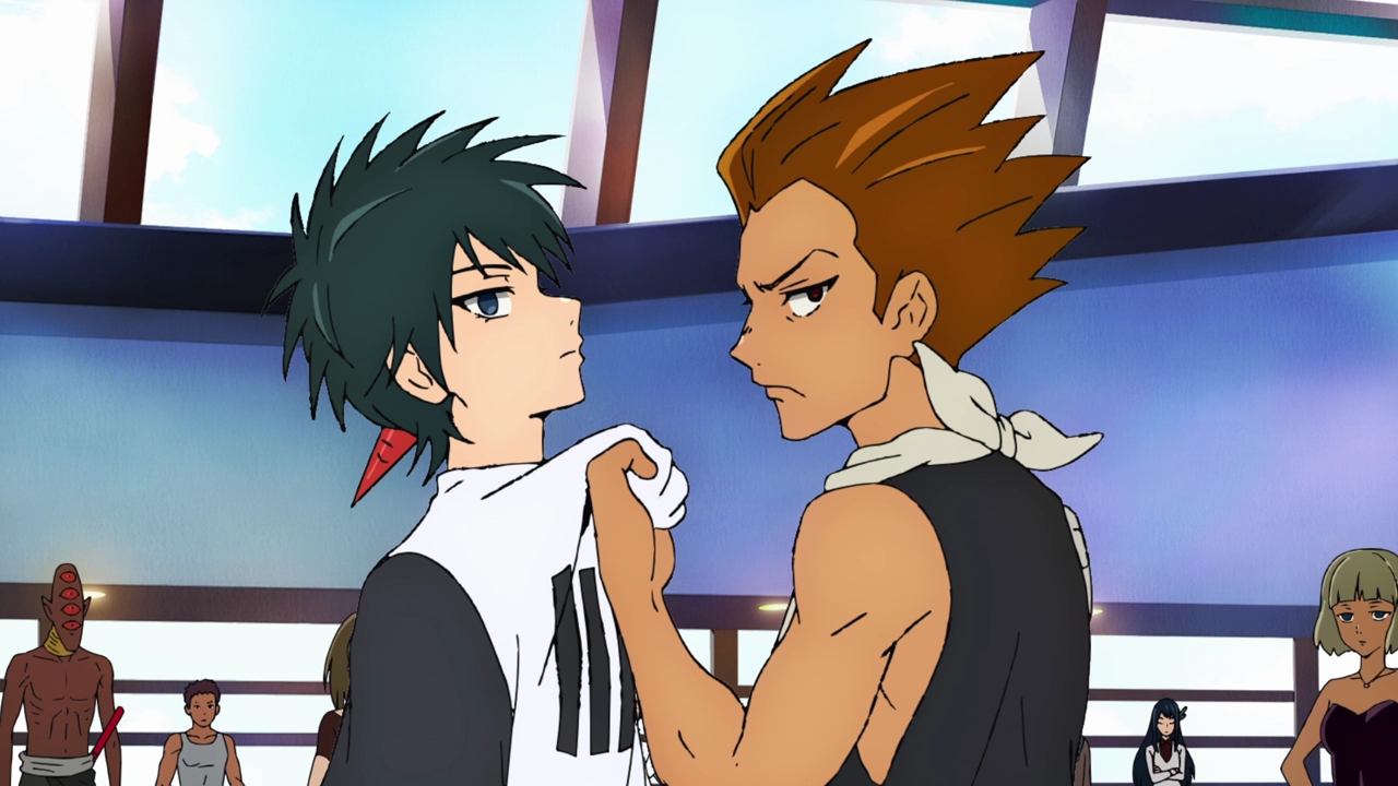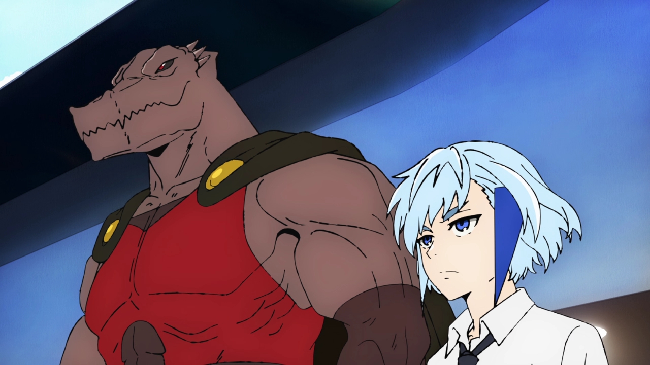 Rak is definitely the best character so far, he’s absolutely hilarious. He’s strong and huge and has a cool design, but he’s also a dork and his reactions are priceless. You got this giant lizard/gator man and he absolutely loses his mind over chocolate, isn’t that amazing? I love him. I’m actually liking this new trio we got going on, because honestly if the show continued to just focus on Bam by himself it wouldn’t nearly be as interesting. Having Khun and Rak with him makes things more entertaining, and they all play against each other pretty well. Bam, the naive baby one, Khun the cool mysterious one, and Rak the loud and brash one. Again, Rak just makes me laugh because he looks so weird standing beside two bishie boys. BIG MAN and two cute boys, it’s hilarious.