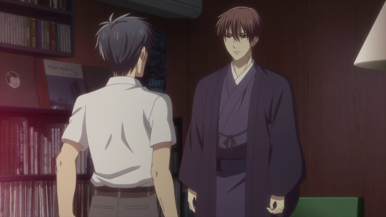 I was honestly surprised when we were introduced to Kyo’s father this episode. I didn’t expect him to show up this soon. For some reason, I thought this part in the manga happened a bit later… I feel like my sense of time in this series is messed up. Or maybe it’s just been too long since I read it. ANYWAYS, right away, we find out just what kind of man Kyo’s biological father is. He’s anxious, quick to shift the blame onto others, refuses to take any responsibility for anything and just highly defensive. As soon as he felt like he was being blamed for anything, he was quick to shift the focus onto Kazuma, calling him out for taking the money that comes into taking care of a Zodiac member. He acts like a freaking victim, as if his life is worse than anyone else’s. Out of all the parents we’ve witnessed up to this point, Kyo’s father is probably the worst. It’s terrible that he doesn’t even refer to Kyo as a person, instead calling him “it” or “that thing.” Even going as far as to shift everything that’s “wrong” with his life is Kyo’s fault.