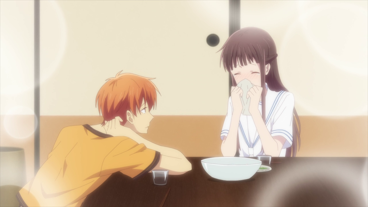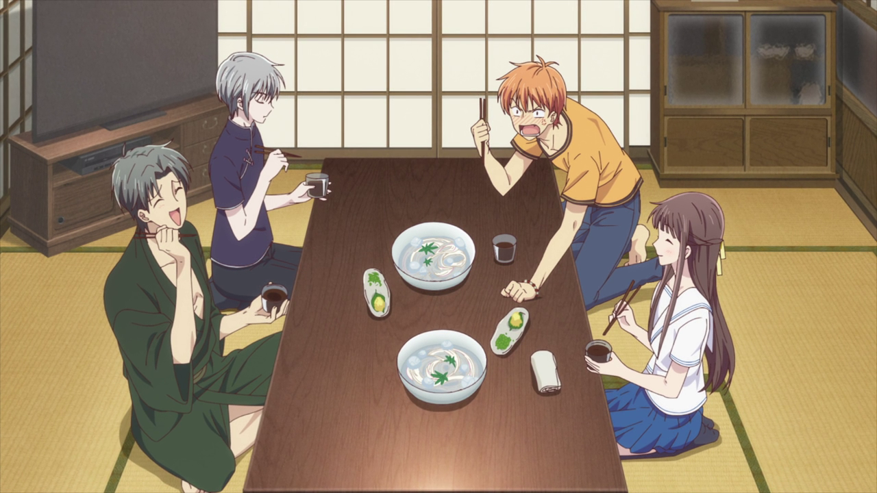 Now, there are times where Fruits Basket just gets way too real sometimes. When Tohru was wondering about if she’d able to find a job and be able to make ends meet  and started breaking down over that thought, I was like: UGHHHHHHHH since I too worry about finding a good job someday and if I actually have what it takes to find a good job. I FEEL YOU TOHRU. And while Shigure is shady as heck, he still shared some very valuable advice by telling Tohru to take on a giant load a little at a time. The metaphor of seeing a mountain sized pile of laundry spoke a lot to me as I saw my life the same was that. I feel pressured to do everything as fast as possible, but the more I think about it, the more frozen I get and I end up wasting time. So hearing things like, take on those things once step at a time while having the end goal in mind, don’t stress over it, makes me feel more at ease and hopeful. And I do appreciate that Shigure even reiterated that even while you’re doing that, you should still take some time and take a break and do something fun once in a while. It actually felt very sweet when the episode ended with everyone eating somen together. Nothing good comes from stressing about the future. Take things one at a time and think about what you can do in the present to prepare for that future.