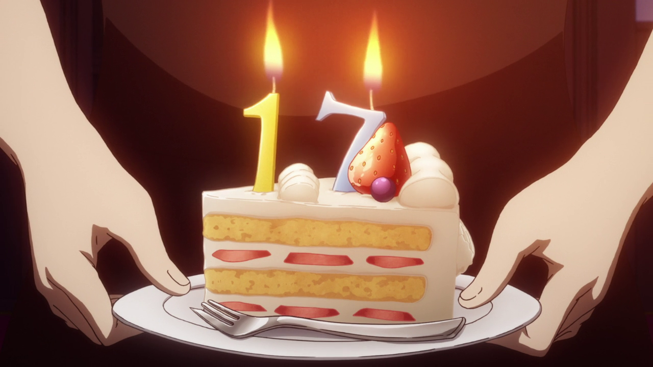 I did spazz pretty hard when Kaguya came out with just a slice of cake and a fan she did calligraphy on. She was just so cute with how shy she was over the whole thing since she was baring her true feelings here without putting on a mask or making excuses. It was just purely Kaguya and it was adorable. And then I spit all over my screen when she said not to open the sealed door because the rest of the cake was still there XD. This freaking series makes me weak in so many different ways and I’m living for it. The birthday was a success as Shirogane gave me cute feels when he blushed so hard while screaming in his head at how happy he is. I lost it at when he looked up the meaning of the calligraphy and started yelling at how cool and awesome the message was. Man these two are so dumb… I love it.