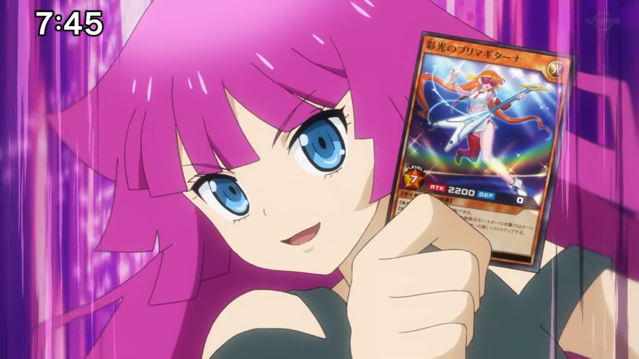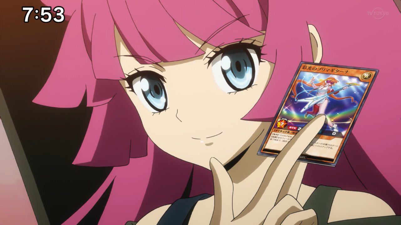 In other words, today was her first real taste of the game! Yuga did a good job of provoking her into it, and made sure she had no way out by providing her a deck and duel-disk. It was hilarious when she finally got her chance to pull out her ace monster, Prima Guitarna, Yuga’s reaction was priceless. And while she didn’t win, it was still so much fun to watch. I would also say, as far as I can remember, this was probably my favourite “tutorial match” I have seen from Yu-Gi-Oh!  It had the perfect balance of playfulness and humour, accompanied by witty dialogues and relatable moods, such as Yuga and Romin getting distracted by Rook’s and Gakuto’s antics on the sidelines. It’s one thing to be totally focused on the match, but when you have Rook crawling on the grass while Gakuto is trying to restrain him, it is understandably hard to ignore!
