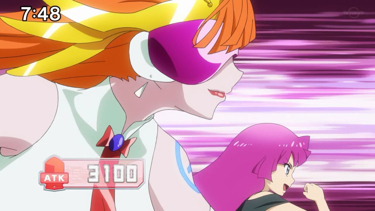 But now that we know Romin has never really been into the game until Yuga got her to try out Rush Duel, it makes me wonder what sort of relationship she has with Goha Corporation. Considering they seem to be in controlling just about everything in their society, could it be that Romin is a trainee in one of their branches for music? Do they have a deal of a sorts that if she were to observe and track her peers who are defying the order, she would get something like a debut in return? After-all, we do see her crying in the OP. Considering how she is quickly becoming friends with the boys here, I wouldn’t be surprised if she were to start feeling guilty of reporting them behind their backs.