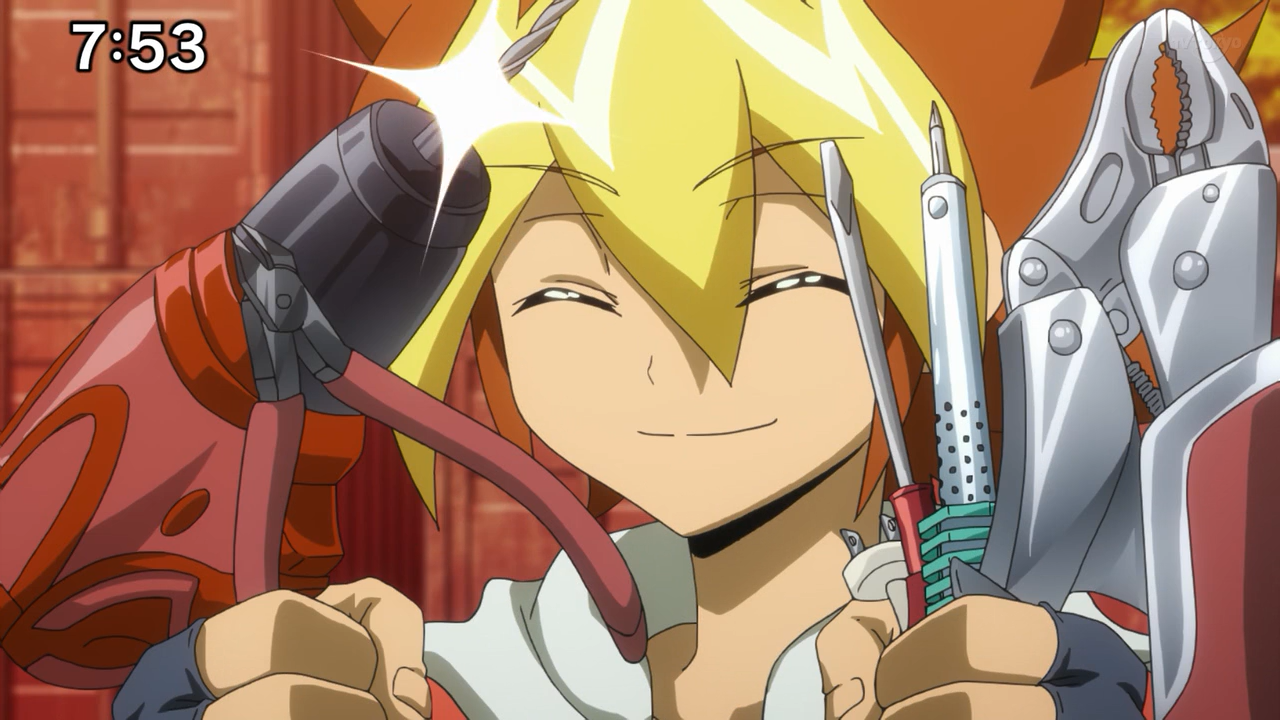 We are only three episodes in, but I think it’s safe to say Yu-Gi-Oh! SEVENS has definitely sold me on its newfound humour. It is quite refreshing to see the first couple of episodes without any signs of angst (just yet). I really can’t get over how well they manage to slip in so much comedy, even when it’s just happening in the background of the conversations (ie; Rook getting caught up in one of Yuga’s inventions). My favourite part of this episode had to be Kaizo the robot. Too bad he pushed Yuga’s patience, because he was so entertaining to watch. It was absolutely hysterical to see ask for her autograph, beg for a name because he didn’t have one for her to sign to, and then later trash-talk Yuga throughout the entire duel— that had to to be the best part. I lost it when he went on about “reflect upon your foolishness in the depth of hell”. He definitely gave off Ai vibes.