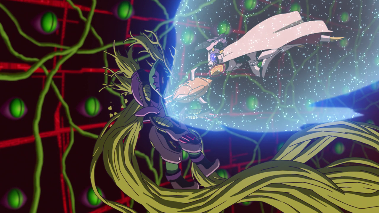 Well… that was… something. The battle between the plant virus Digimon and Omnimon felt a bit… underwhelming. However, even then, the animation and choreography was still leagues above the Persona 5 the animation fighting scenes. And they at least made it interesting enough. So I guess I can’t complain too much. Though I did notice that they referenced a lot of different shots like Our War Game. Also, I recently found out this vine/plant virus digimon was actually the central antagonist in the Digimon Savers movie. Guess they wanted it to make a comeback lol and not have it completely be Our War Game by not straight up using Diaboromon. Though I do think it was a little weird that both Taichi and Yamato didn’t seem that alarmed by the fight. It didn’t seem like they were showing the correct reactions and emotions in that fight, but oh well. Just a little nitpick on that.