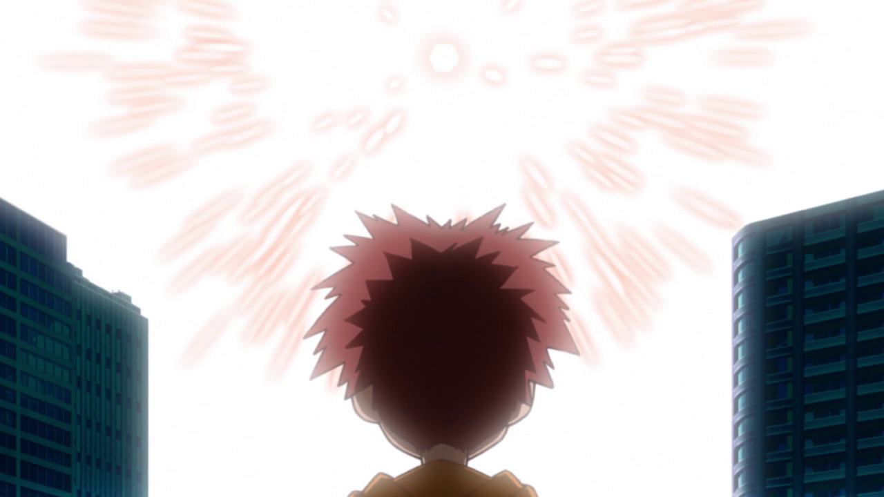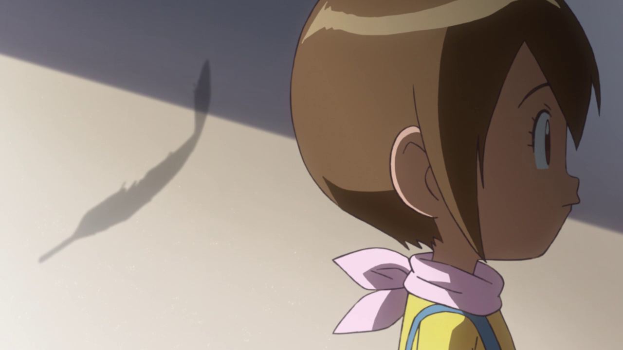 The way that they cleaned up the missile situation was a tad confusing. Did they just reroute where the missile hit? Though I feel like the fact that it went back up despite looking like it didn’t have enough room to do so. It could have been better, but it is what it is and I wasn’t offended by it. I did find it interesting that they separated Taichi and Agumon right after they had become partners. But I guess it’s not completely official quite yet since they haven’t really held a conversation about the whole thing. However, they’re both flung away from each other when the light of the missile explosion happens before they could get a final word out.