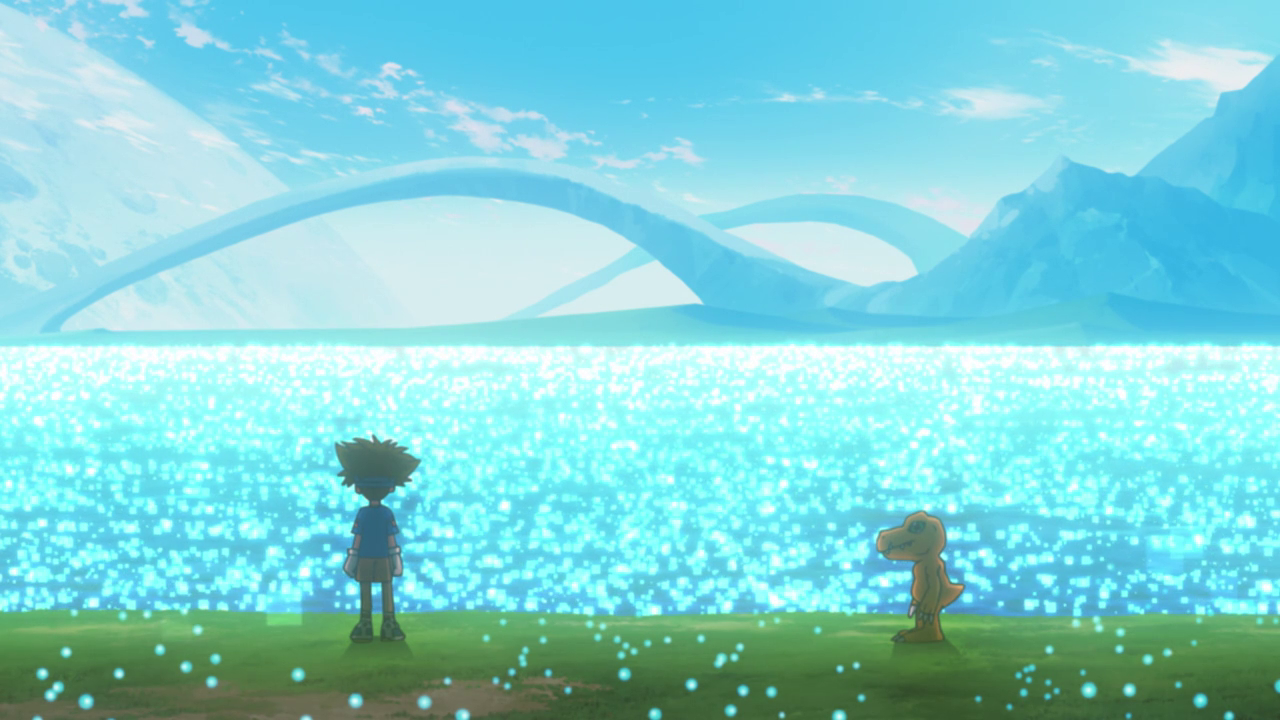 However, they DO eventually end up in the Digital World… somehow. But WOW, does it look BEAUTIFUL now. I absolutely love the digital effects in the water, showing that it’s different from the real world. I’m so glad that they’ll be keeping the fantasy aspect to this series instead of reducing it to Megaman Battle Network type of internet world. It just makes me excited to explore more areas of this world now because it looks so much more interesting now. However, judging from all the colors and number of lights we saw before showing the Digital World, it looks like that only six of the main group has been transported. Which is surprising considering in the original, seven of them were transported right off the bat. But going off the colors, I’m assuming that Takeru was the one from the original seven that was left out. Which makes me wonder how the heck are they going to do Yamato’s story… unless Takeru and Hikaru are gonna be sent in later. Especially since Takeru has a pretty big role in the first arc of the original.